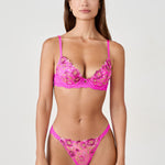 A finely crafted lace basque, trompe-l'œil floral embroidery, a delicate bow between the cups: our corsetry expertise is reinvented in this plunge bra. Thanks to its push-up cups, it offers a boosted chest.