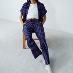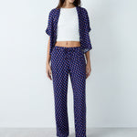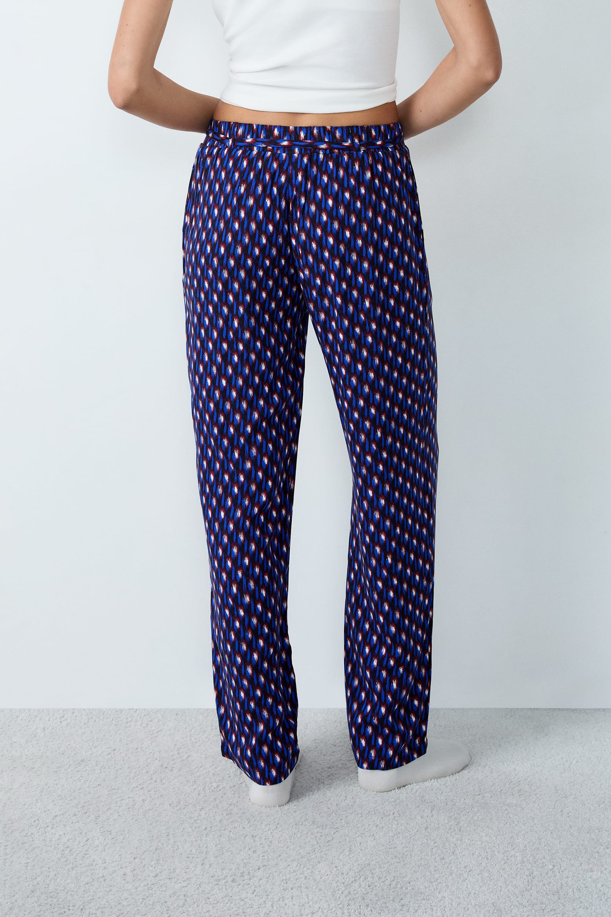 Adorned with an abstract print, these pajama pants stand out with their belt loops and tie at the waist. Their straight cut creates a refined silhouette.