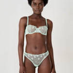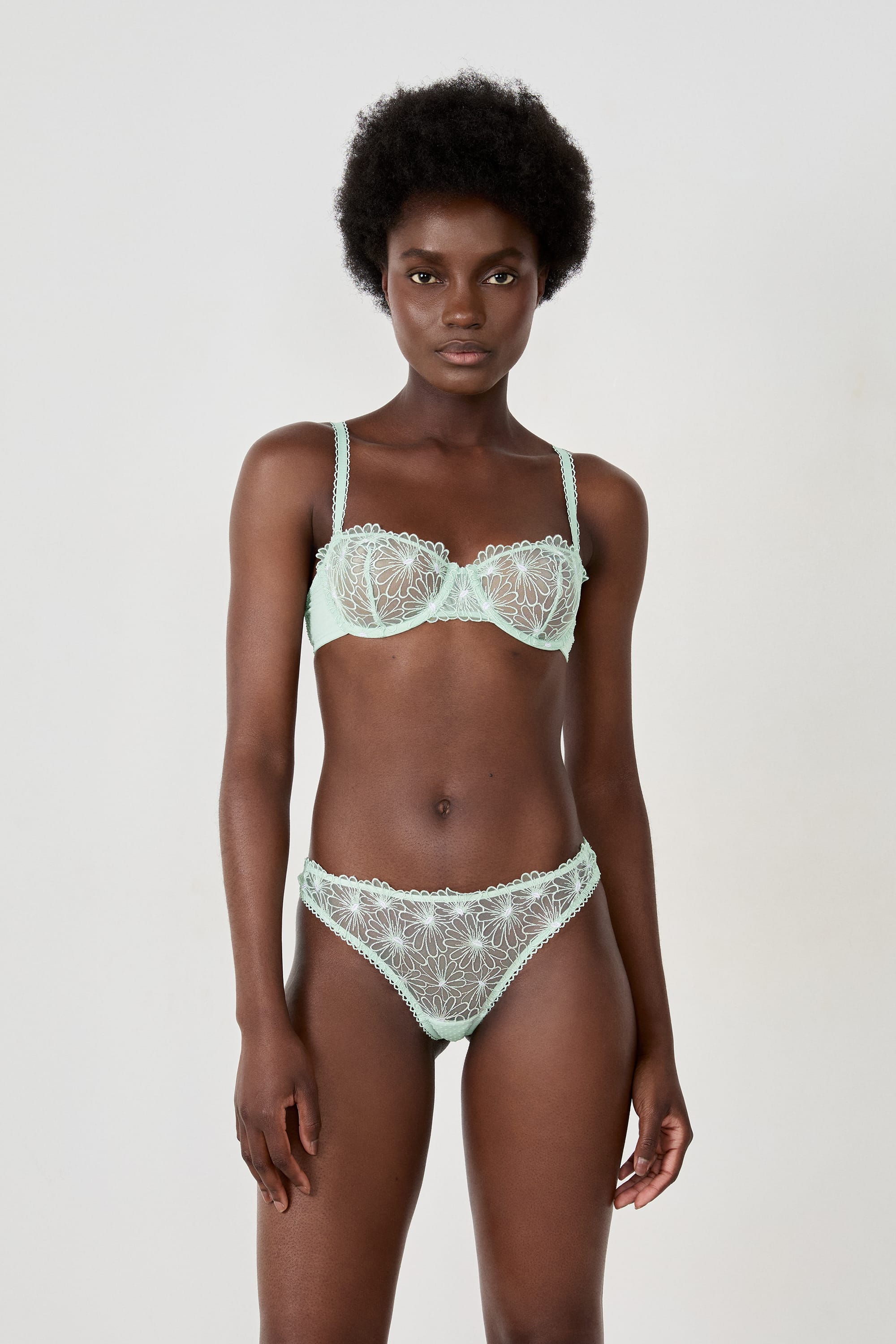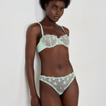This thong becomes delicate with its floral embroidery designed in trompe-l'oeil. It plays a subtle game of transparency and opacity, enhanced by an openwork detail at the back.
