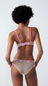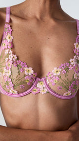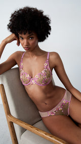 Our corsetry expertise celebrates the sweetness of spring through intricate floral embroidery. Unlined with underwiring, this demi bra's neckline is naturally enhanced.
