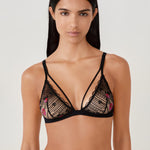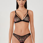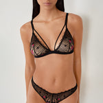 Perfect for enhancing your lingerie, this bra features a triangle lace shape. It is enhanced with colorful floral embroidery and scalloped edges to emphasize a feminine look.