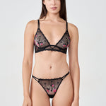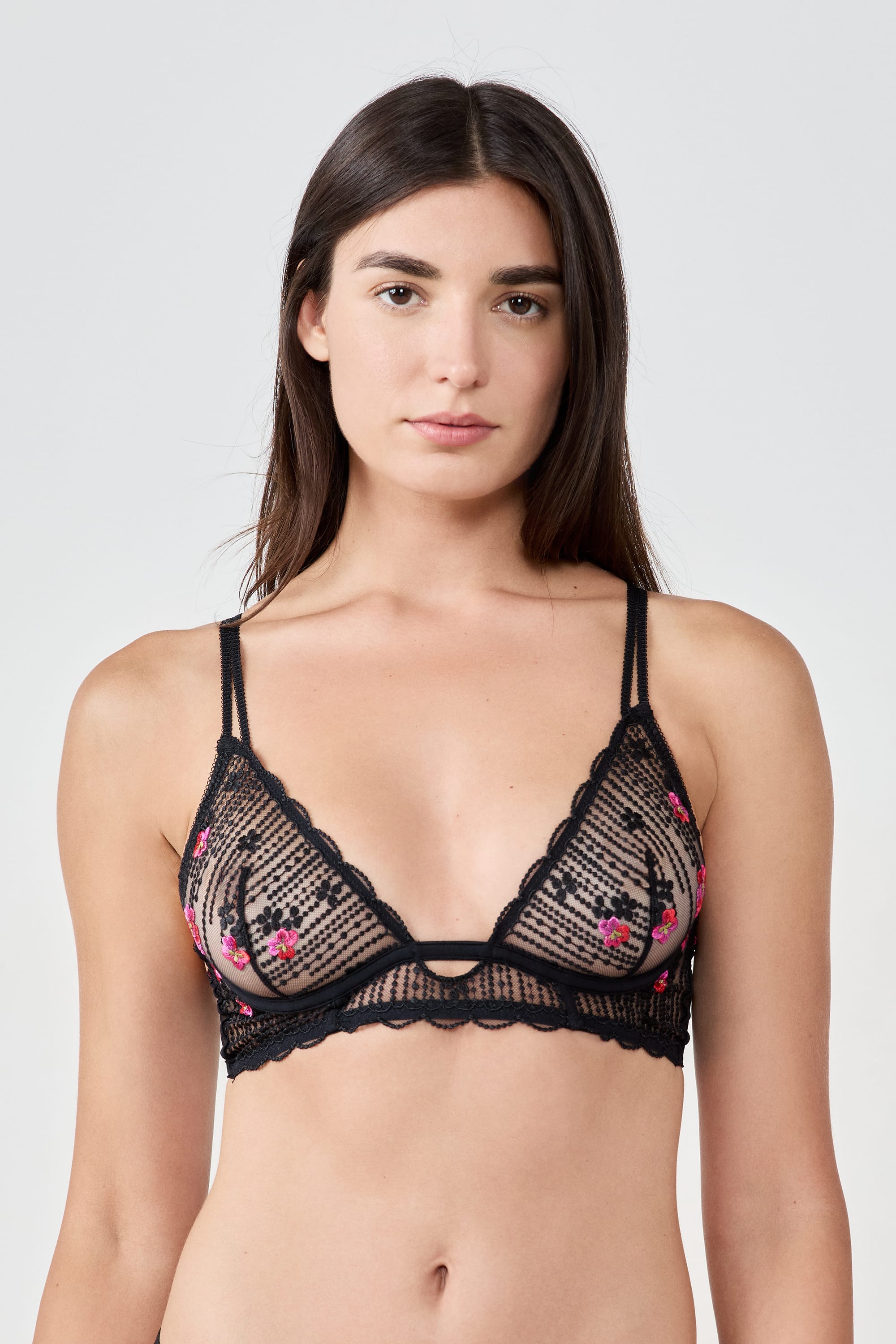 Perfect for enhancing your lingerie, this bra features a classic lace shape with underwire. It is enhanced with colorful floral embroidery and scalloped edges to emphasize a feminine look.