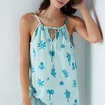Striped prints display patterns that enhance your summer nights. The cotton nightdress draws a delicate silhouette with its tie bow at the front.