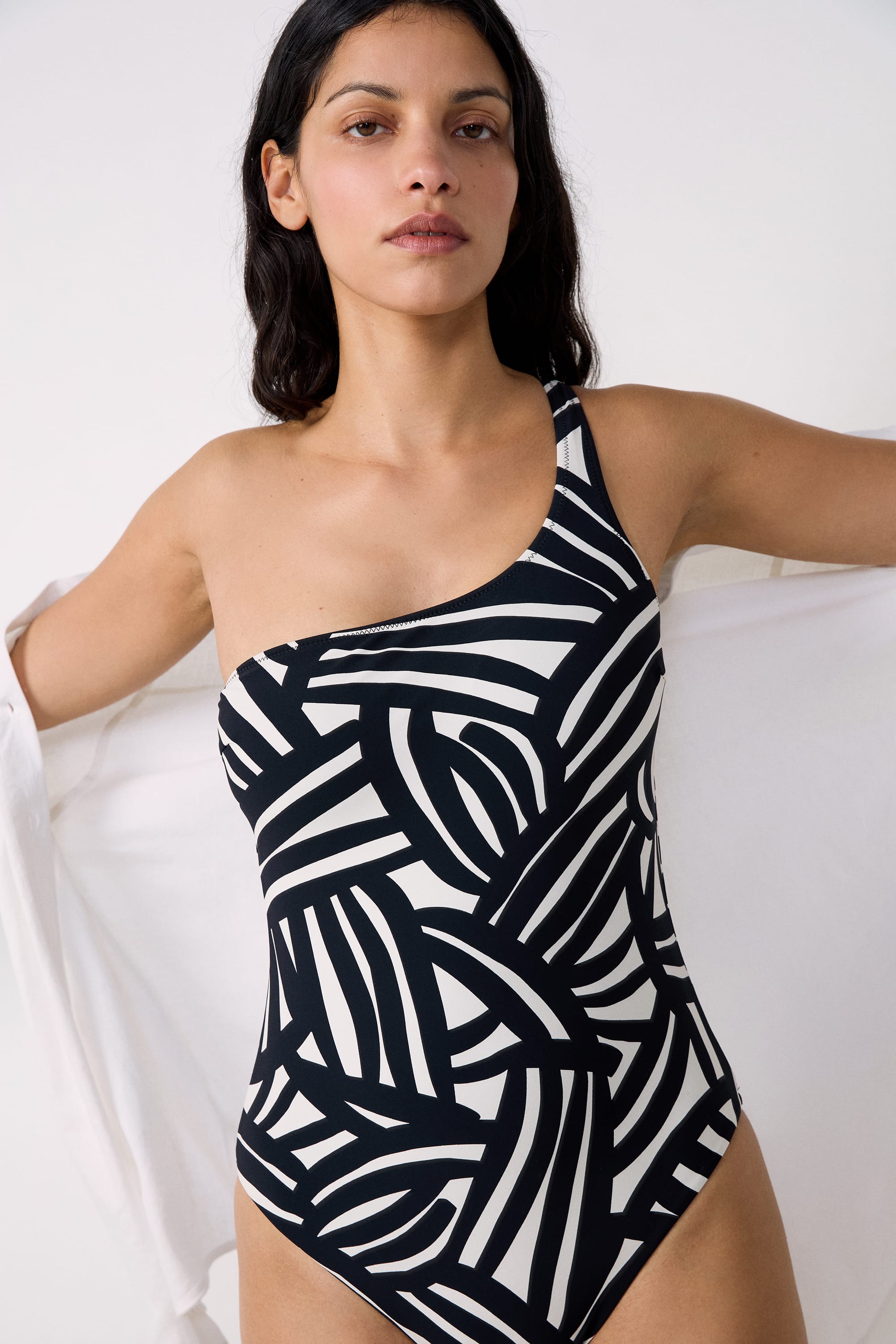 This year, patterns are the summer must-have. With its abstract prints, its asymmetrical cut breaks with the classic symmetry of the one-piece swimsuit, bringing a touch of originality. A piece to take on your trips to the tropics to shine at the beach.