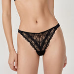 Featuring a ring at the back, this floral lace tanga adds style to enhance your curves. It combines opacity and sheer details.