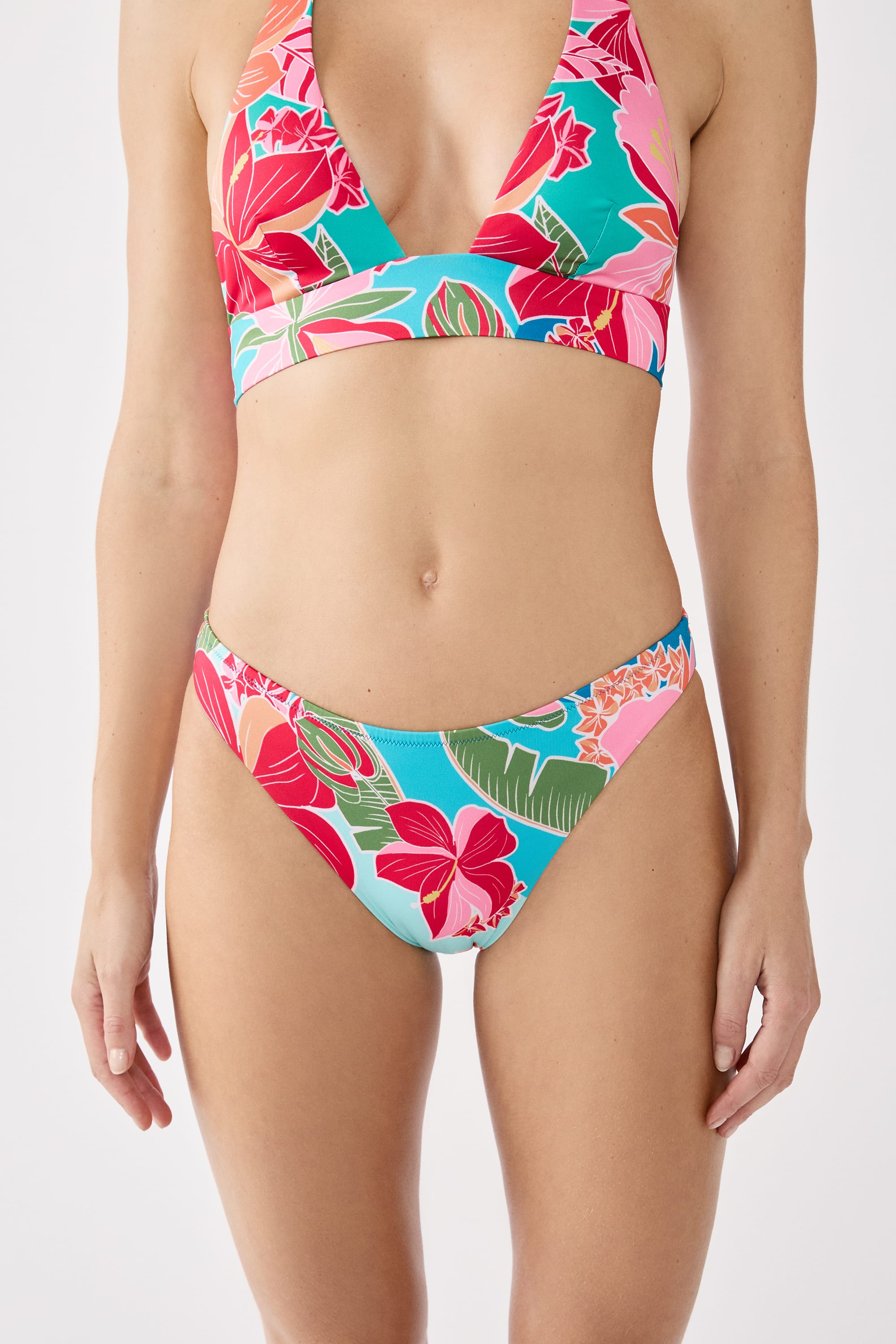 Floral prints are expressed on this bikini brief. Its cut enhances a slender silhouette on the beach.Create a total look with matching tops.
