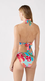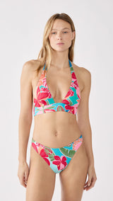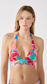 Floral prints are expressed on this triangle swimsuit top, enhanced with crisscross bands. Its scarf shape naturally shapes the bust, offering guaranteed comfort all summer long. Create a total look with the matching bottoms.