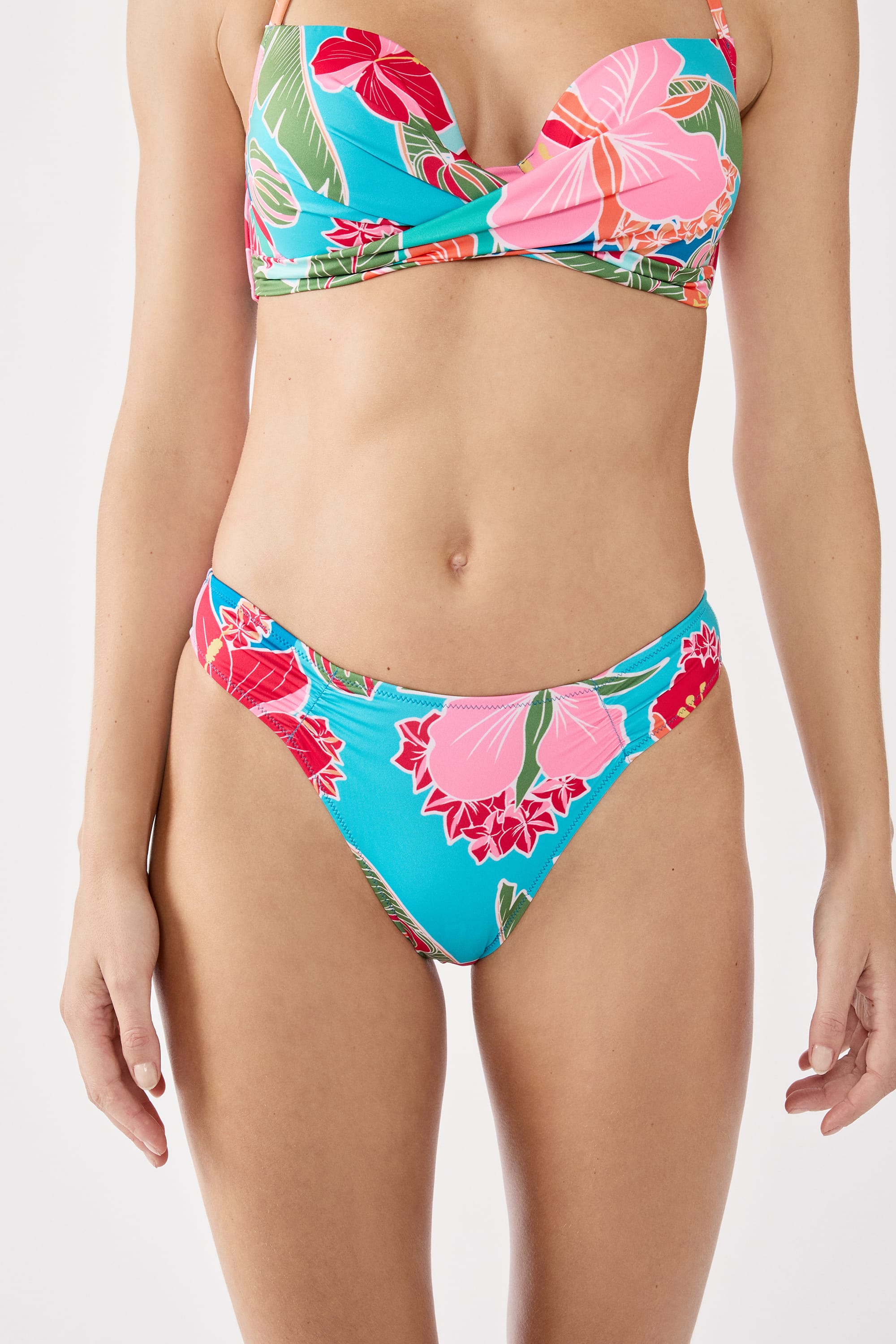 Floral prints are expressed on this Brazilian bikini. Its cut enhances a slender silhouette on the beach.Create a total look with matching tops.