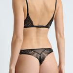 Delicate and sensual, this thong features a floral pattern in fine lace. It features polka dots at the back and offers an ultra-feminine look.