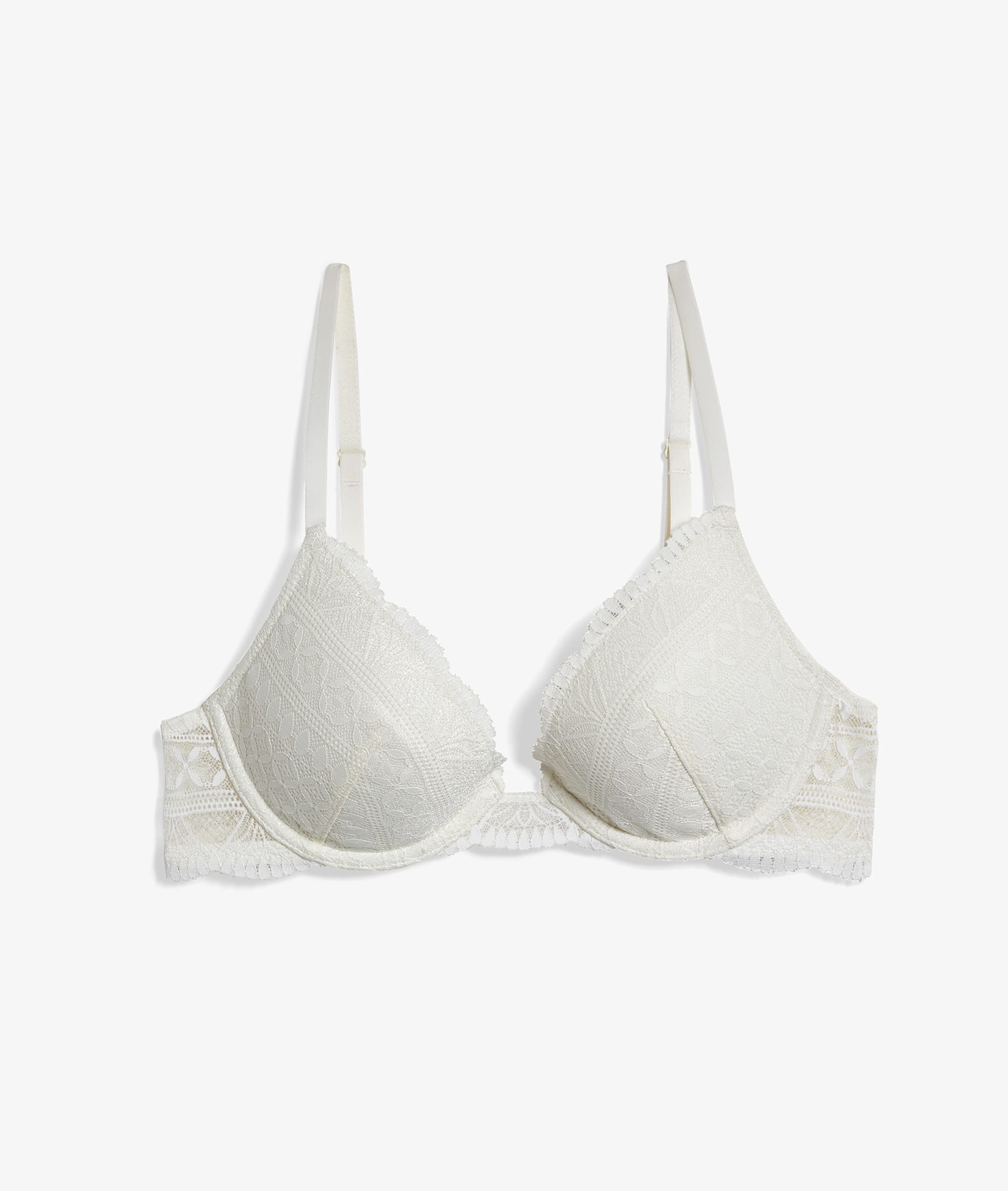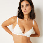 Delicate, refined, and sexy: we've taken our Idole lace and spiced it up to the perfect every day bra that beings you comfort and allure. This push up bra comes with underwire to give you lift and shape, plus a plunging neckline for a sexy look. It features adjustable straps and a back clasp to keep everything in place. • Push-up • Style #2: The Plunge Push-up • Push-up effect • Lace • Padding +1 cup size • With underwire • Adjustable Straps • Specifically designed for D cups and above: wider straps, higher back, and tulle reinforcement • Back clasp