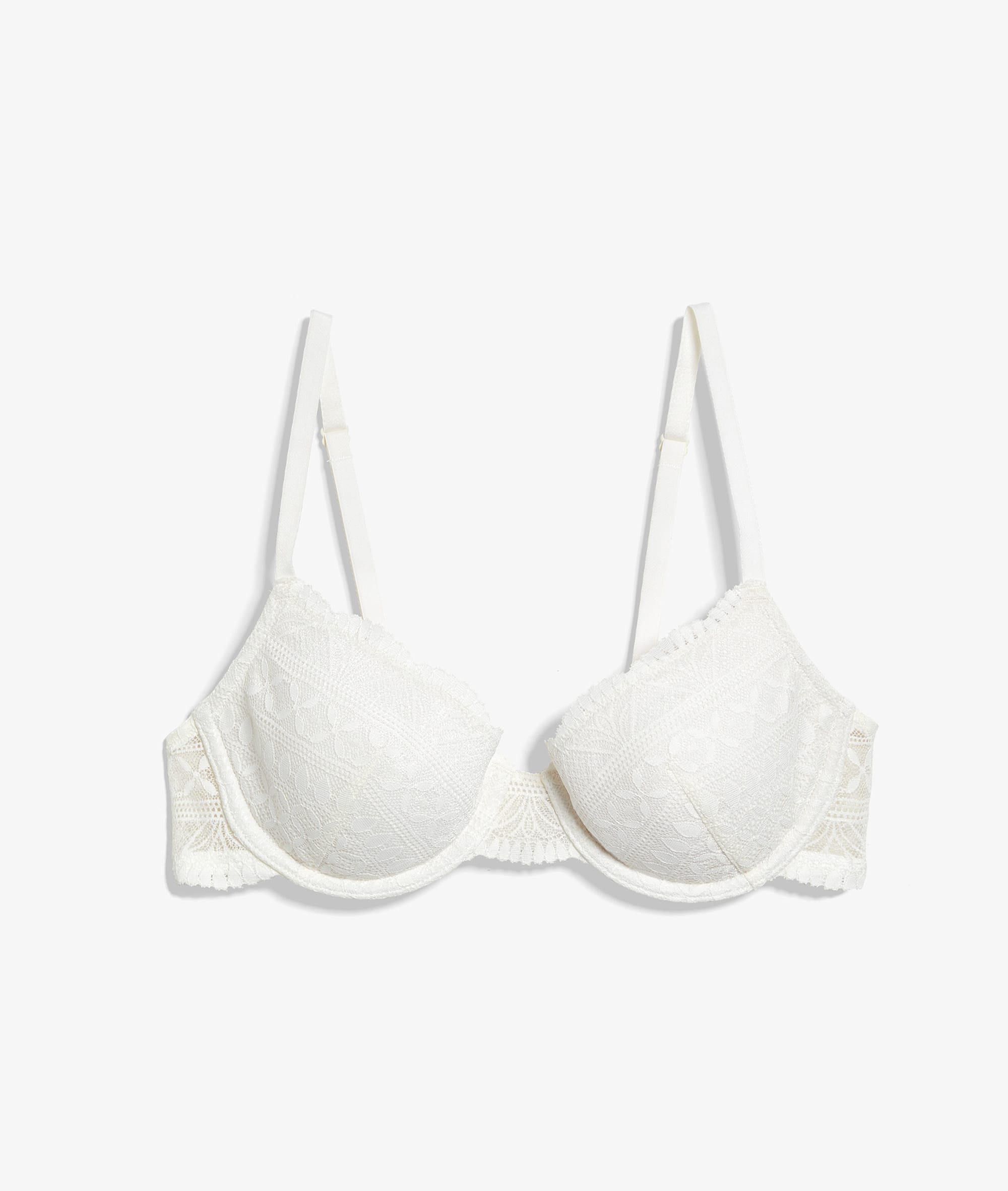Delicate, refined, and sexy: we've taken our Idole lace and spiced it up to the perfect every day bra that beings you comfort and allure. This push up bra comes with padding and underwire to give you lift and shape, plus a plunging neckline for a sexy look. It features adjustable straps and a back clasp to keep everything in place. • Push-up • Style #2: The Plunge Push-up • Push-up effect • Lace • Padding +1 cup size • With underwire • Adjustable Straps • Specifically designed for D cups and above: wider straps, higher back, and tulle reinforcement • Back clasp