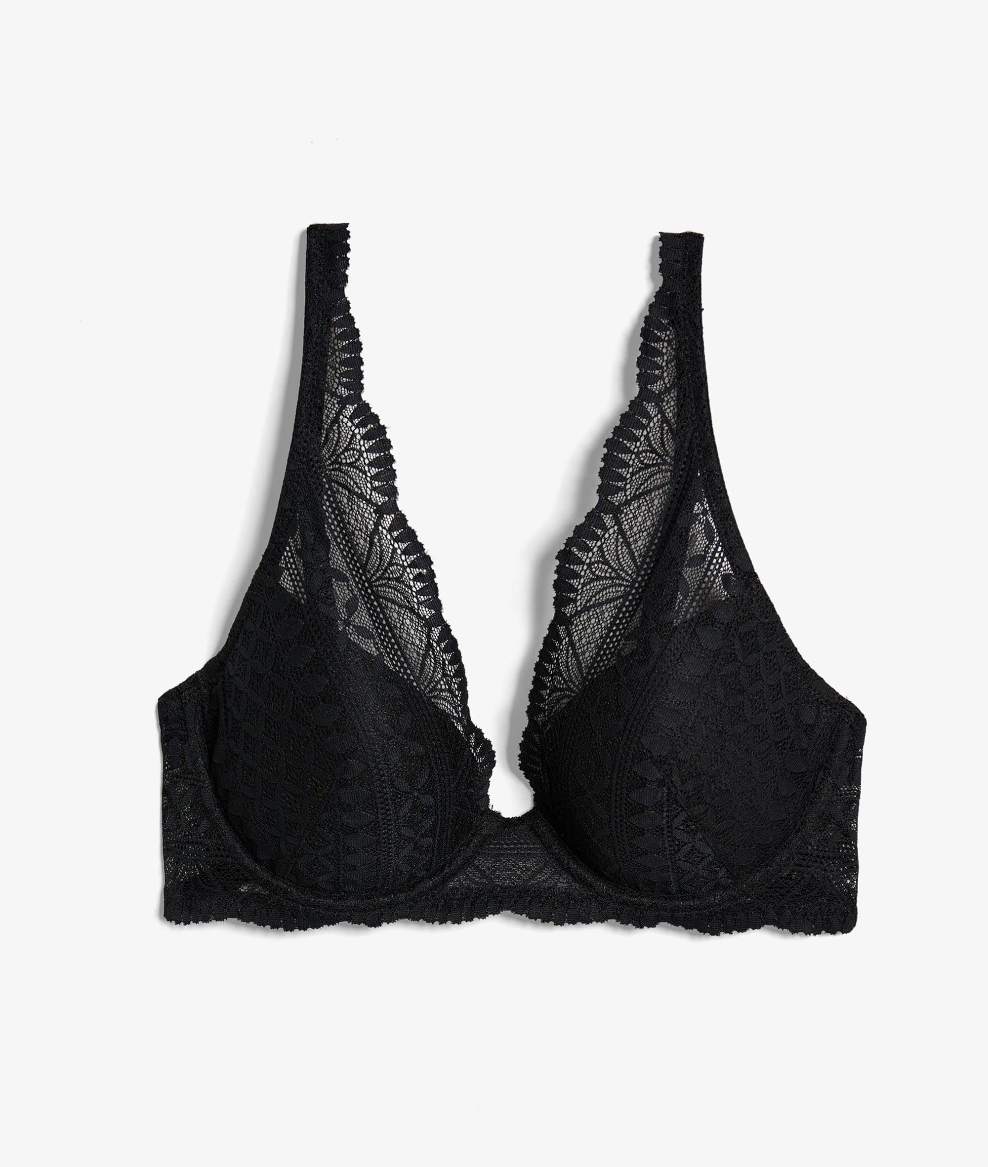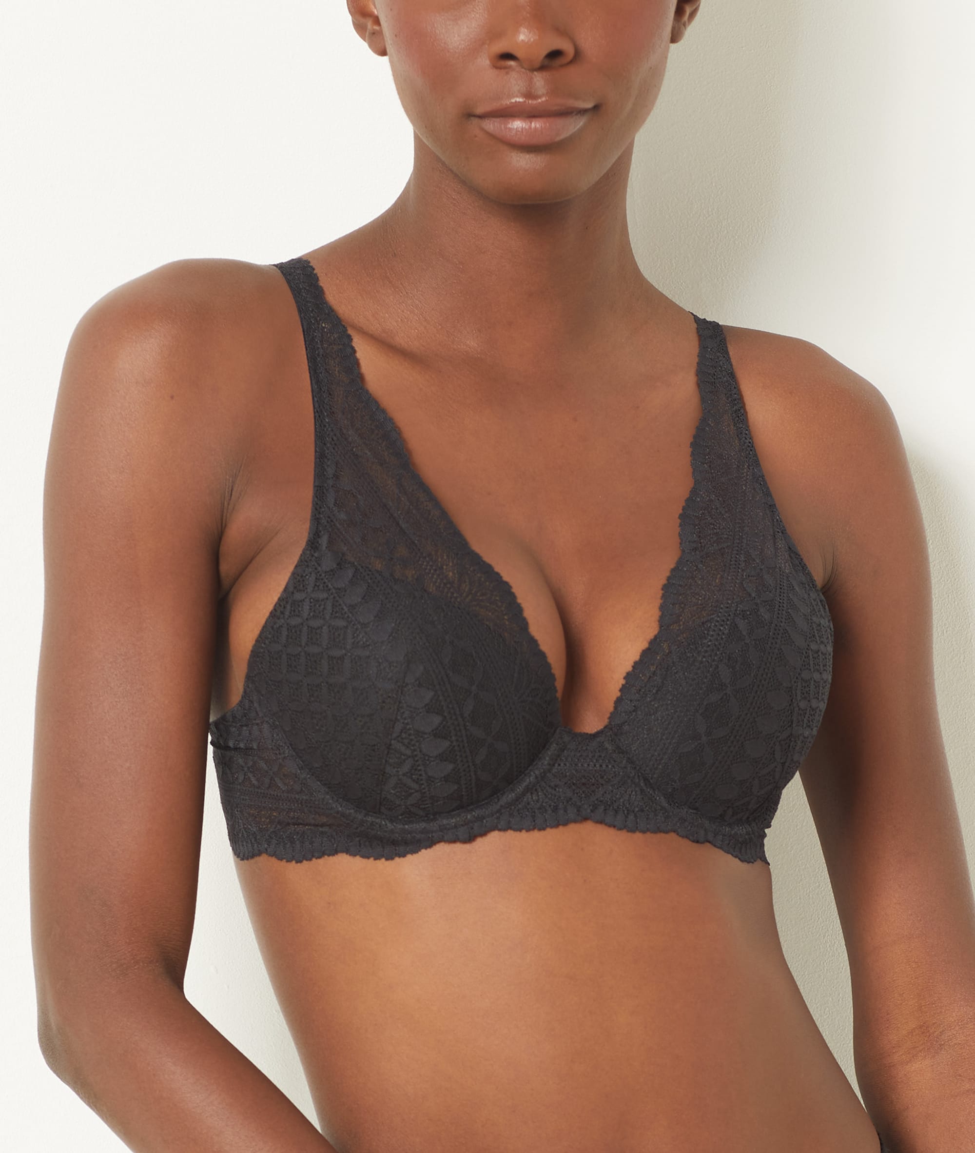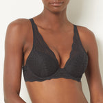 Inspired by our archives, IDOLE is the very expression of our corset-making expertise. Singular and timeless, it is our new signature lace. The neckline is plunging in this underwire bra with thin cups that shape without adding volume.