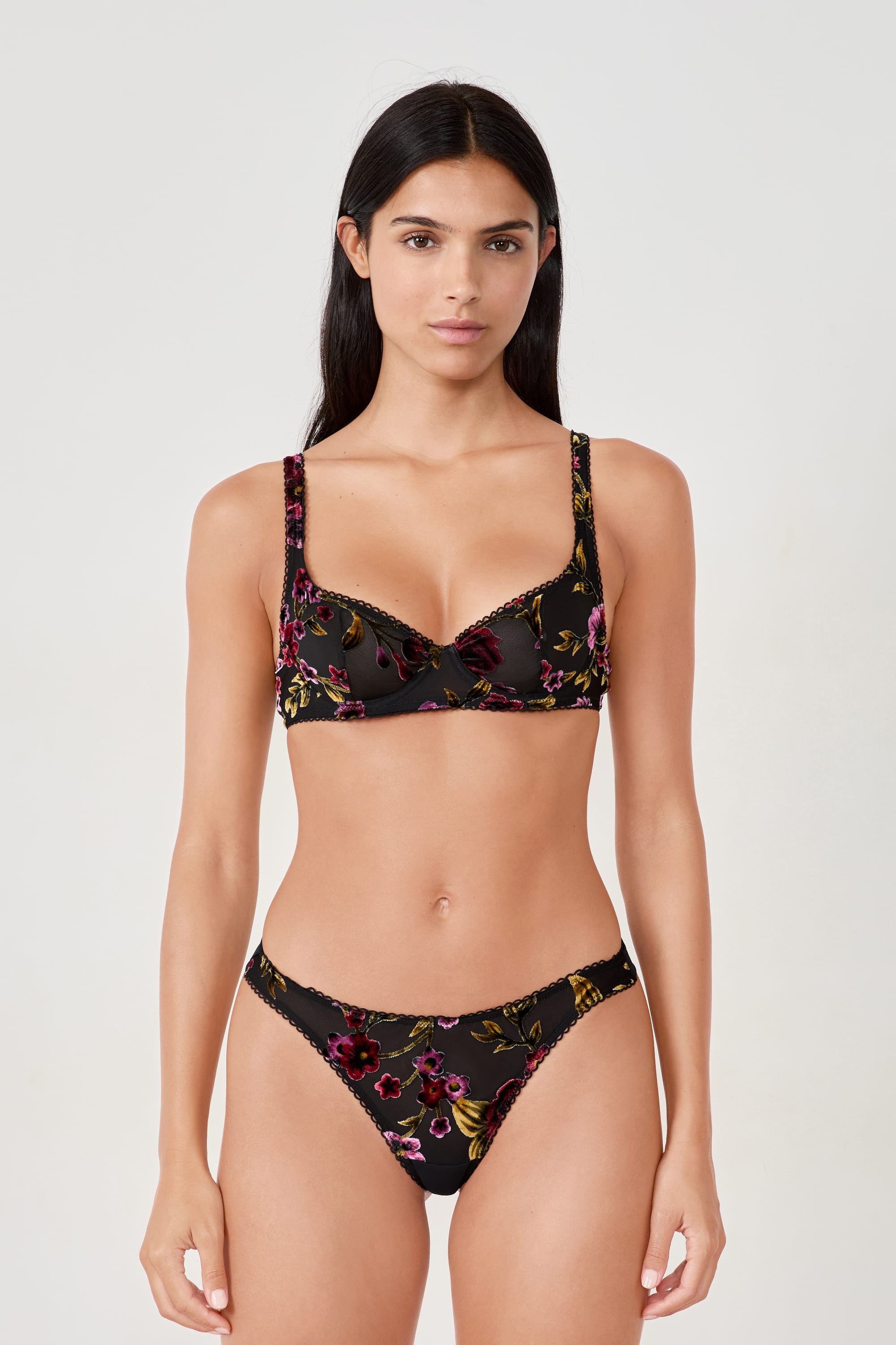 Ideal for a refined and elegant look, this tanga features a floral print and scalloped edges.