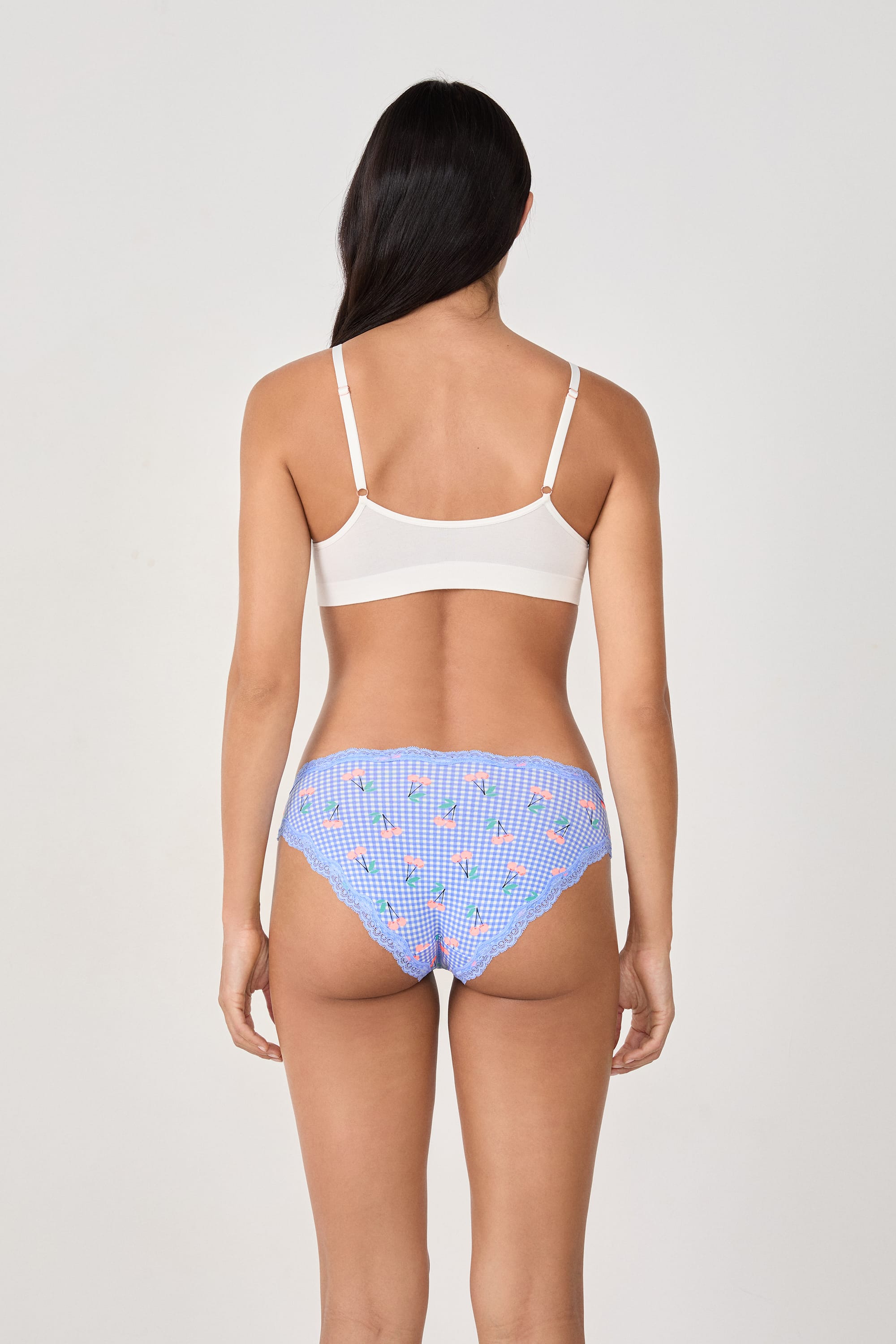 A soft 100% cotton material and charming prints: this set of 3 lace-trimmed briefs is ready to join your lingerie drawer.