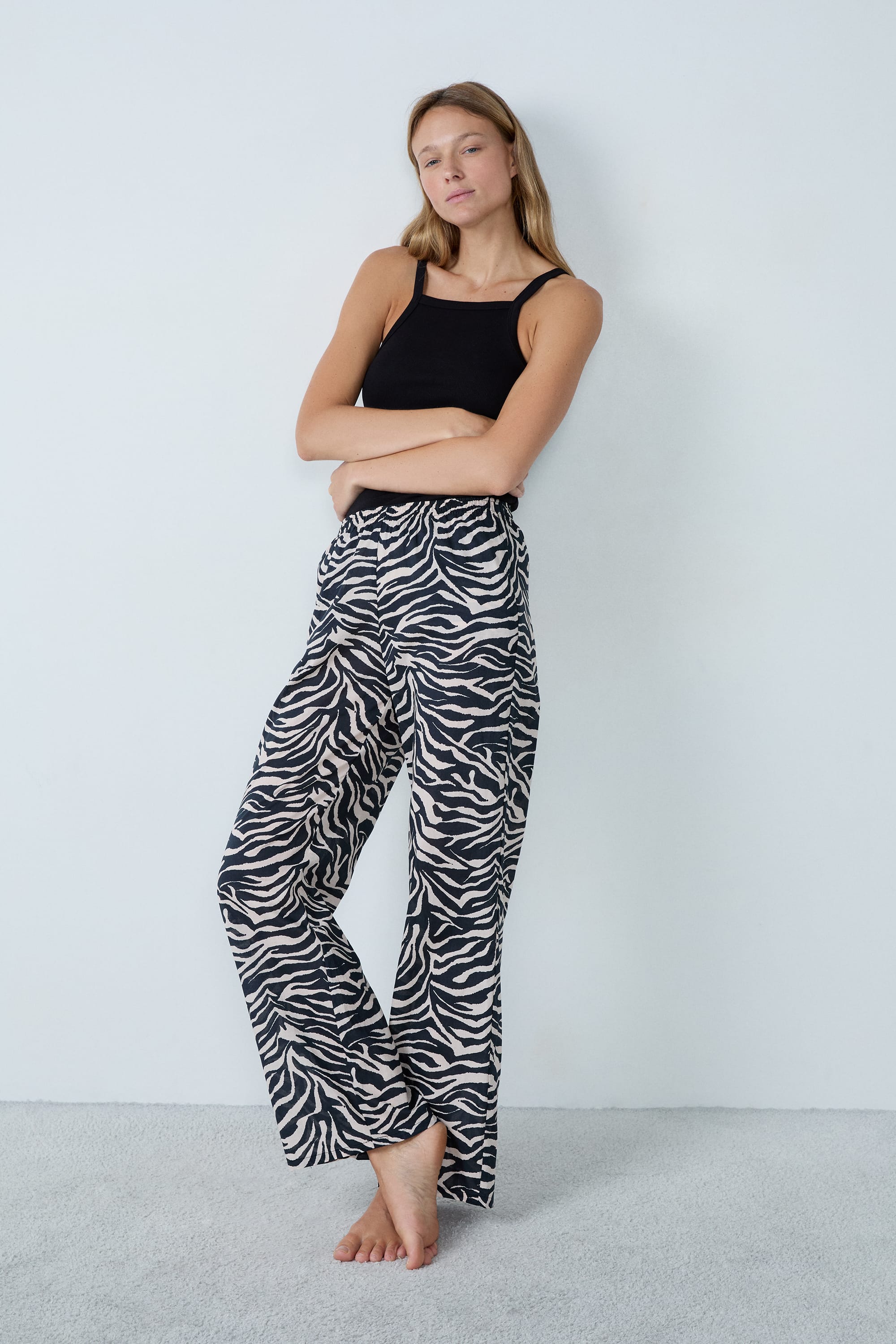 A sleepwear essential, these zebra-print pajama pants feature two side pockets and a fluid fit for dreamy comfort.