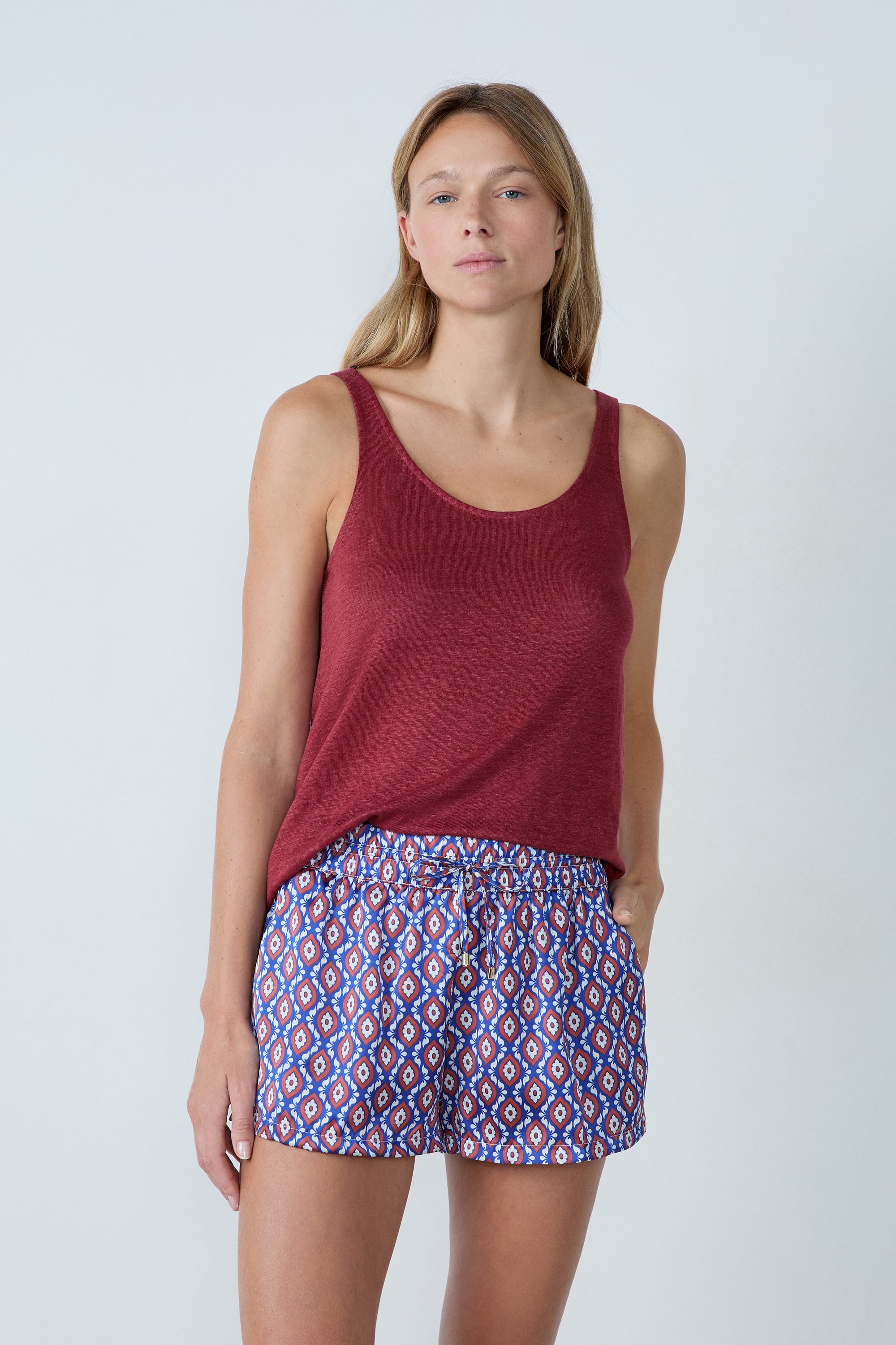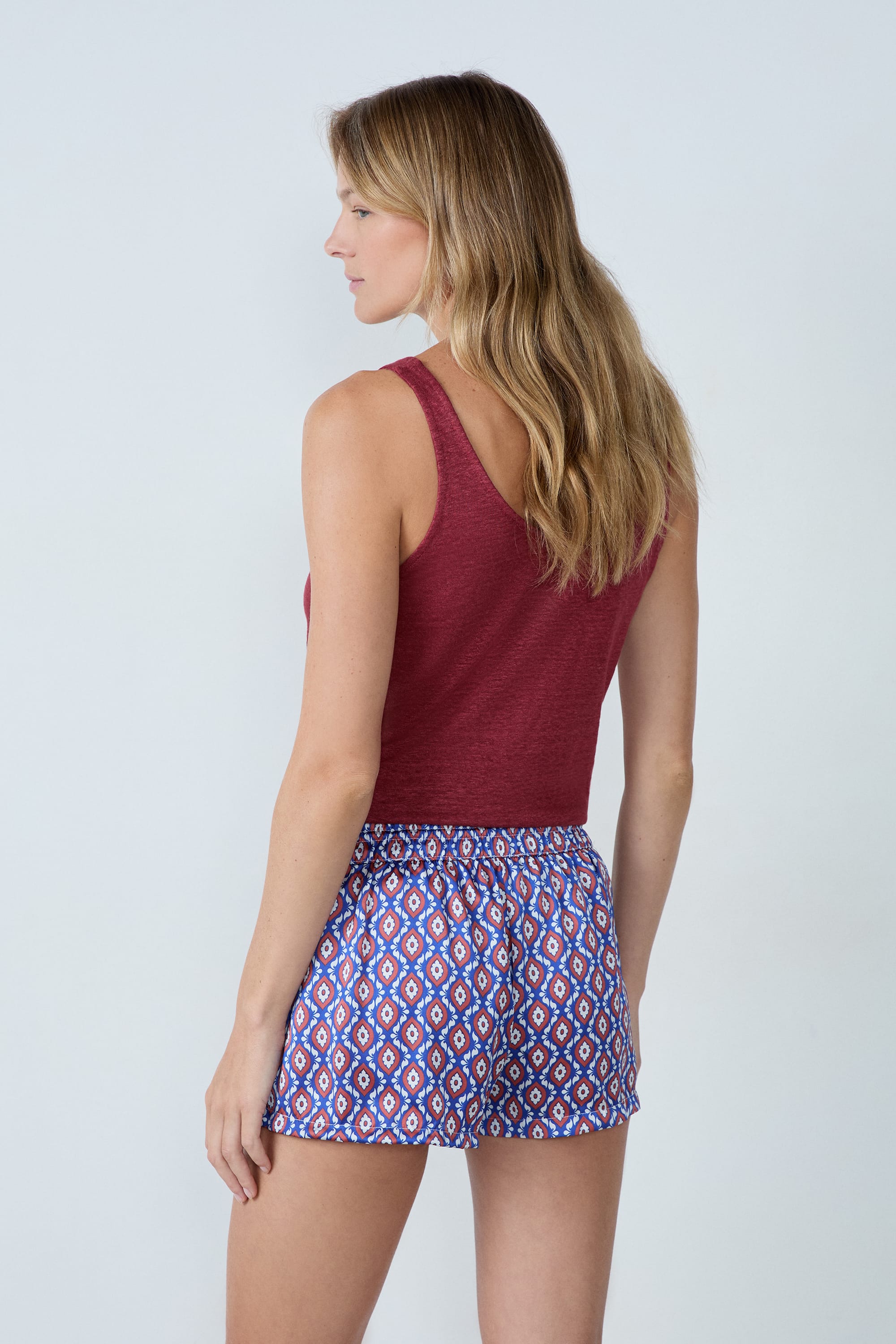 Prints are back with these satin pajama shorts. It structures the waist with its knotted cords.