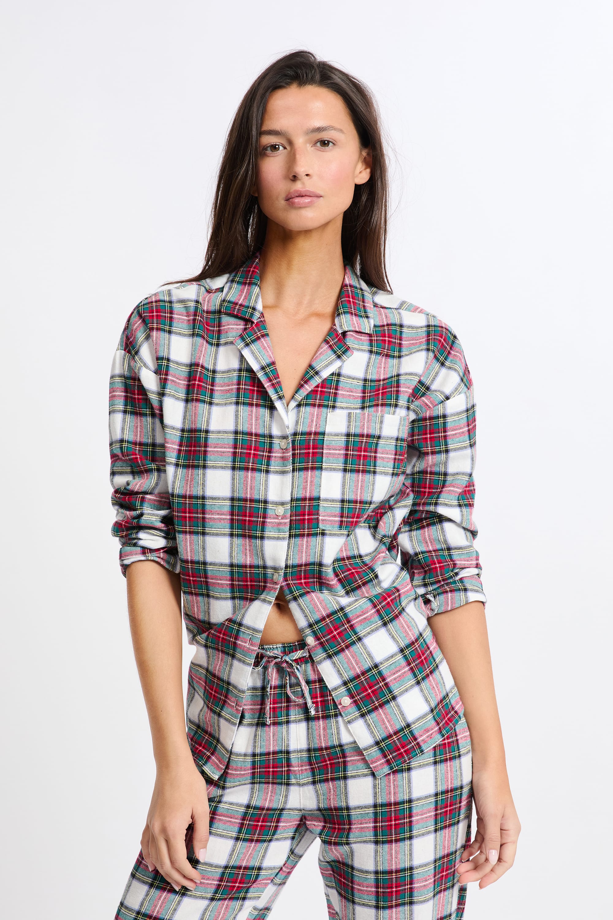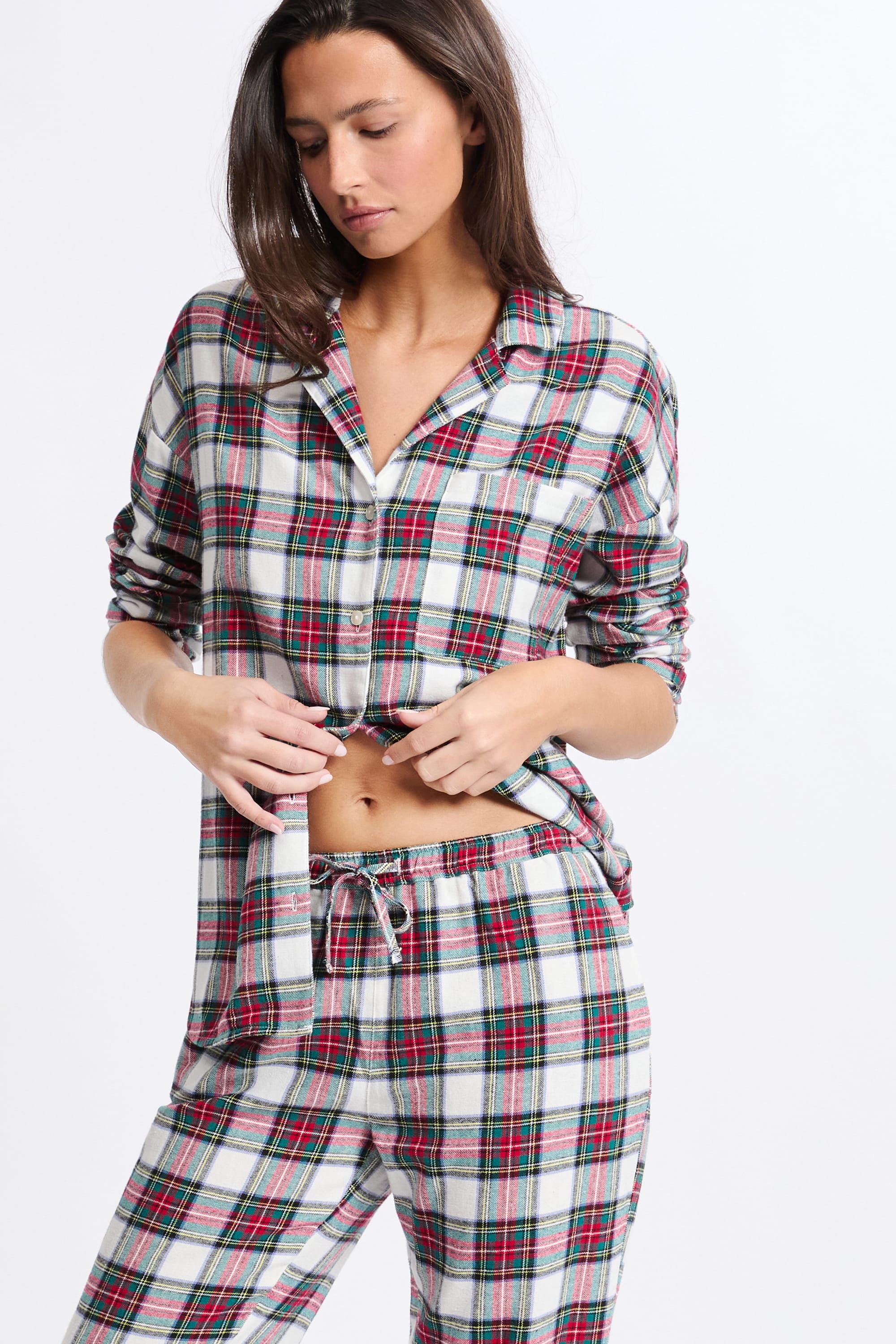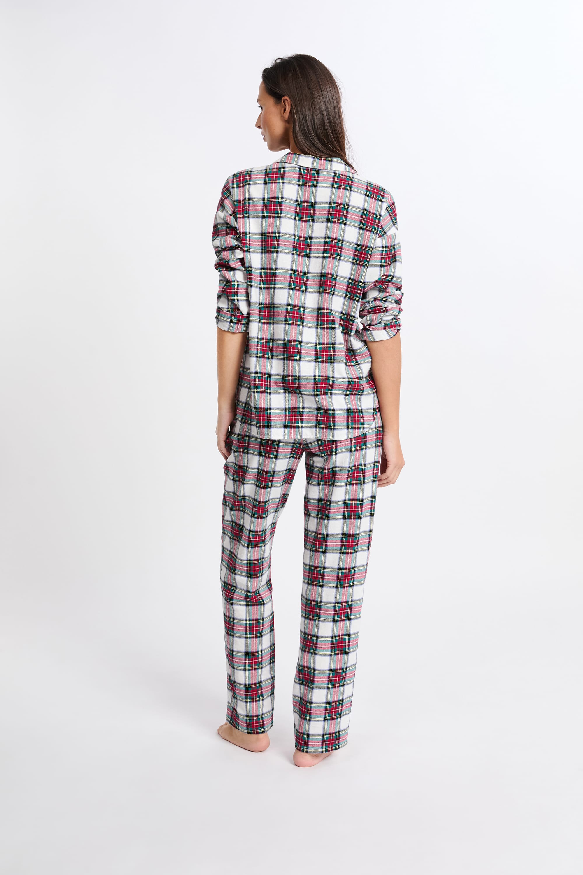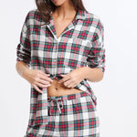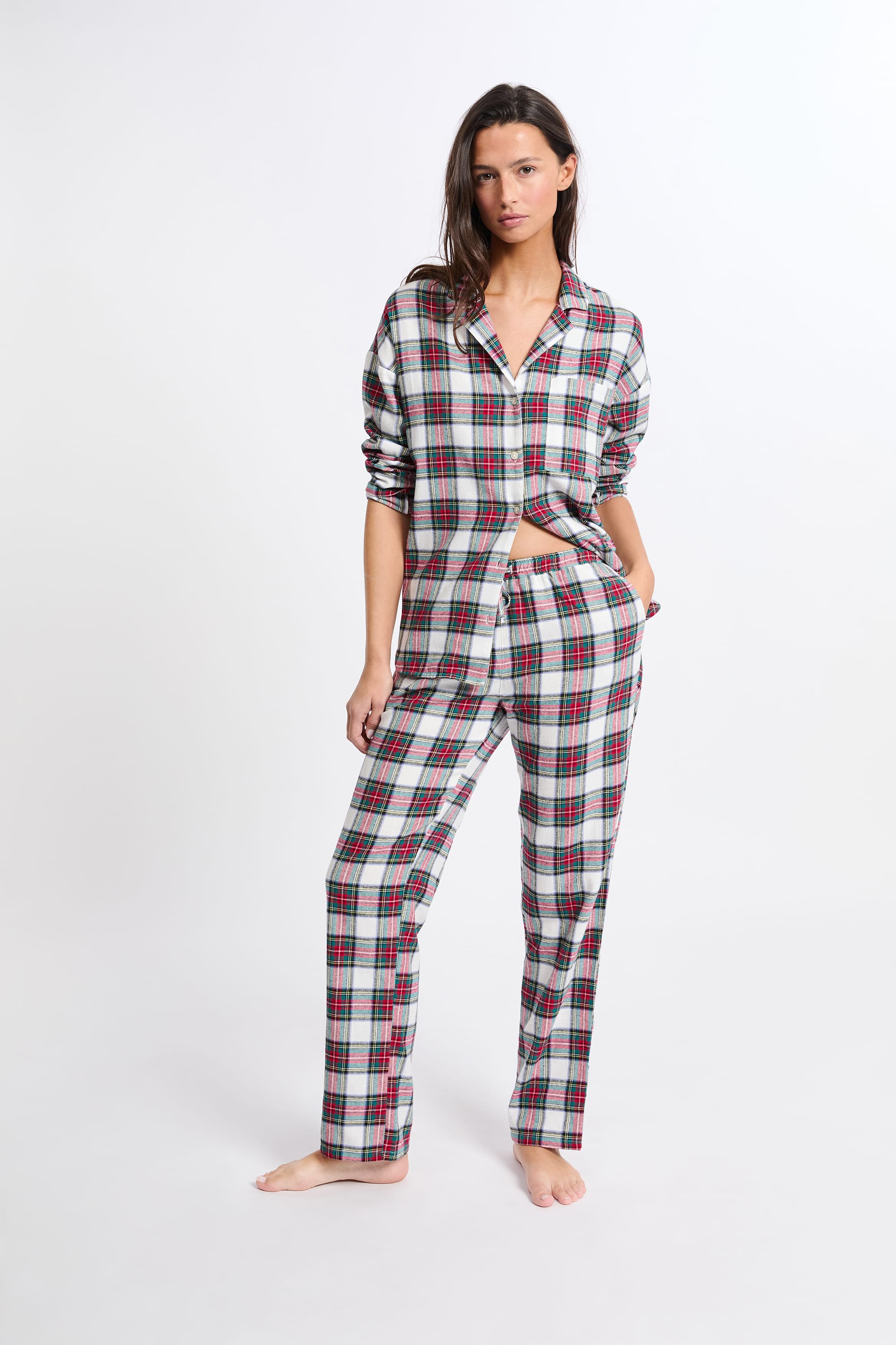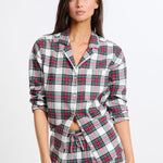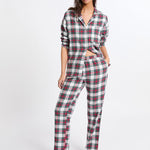This season's star print, this two-piece pajama set features a checkered design. Made from cotton, it features a long-sleeved shirt and wide-leg pants.