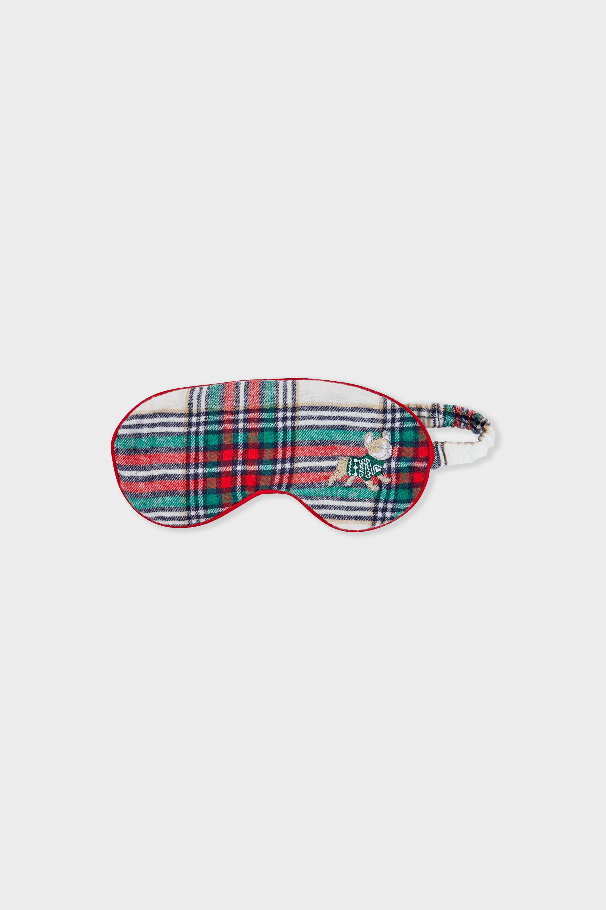 Idéal pour des nuits douces et confortables, ce masque de nuit en coton arbore un motif à carreaux et un détail imprimé chien sur le côté.