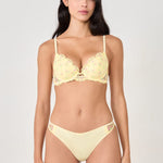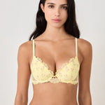 The lightness of tulle blends with an intricate floral embroidery. This push-up bra gives a plumped-up chest thanks to its plunge cut. It adjusts to your liking with its thin adjustable straps and back hooks.