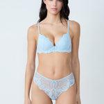 Thanks to its plunging push-up cut, this bra highlights a pretty, push-up shape. Its floral lace sensually enhances the décolletage.