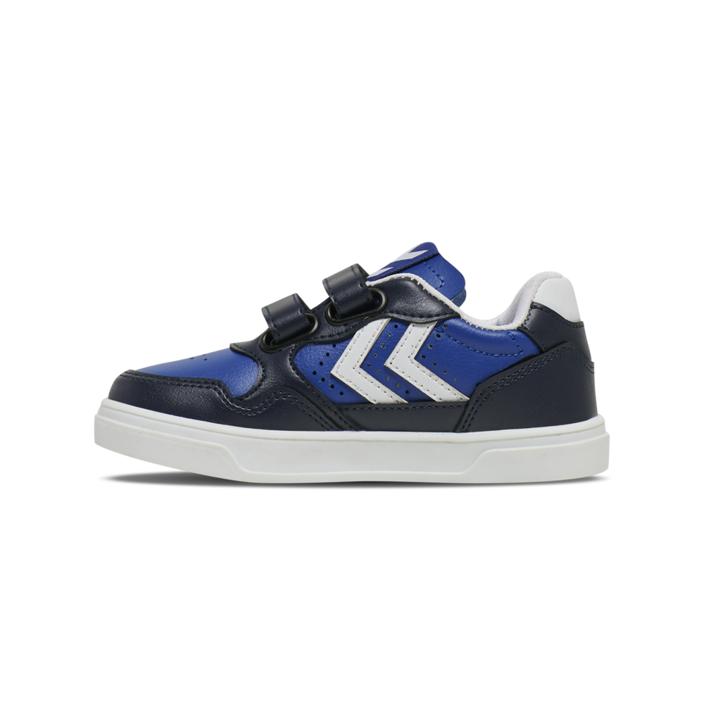 The CAMDEN JR is a court-style trainer with a cushioning EVA midsole and rubber outside for improved grip. These hummel® trainers have a durable synthetic leather upper with reinforced toe cap and heel counter. The elasticated laces provide extra flexibility for little ones during play and outdoor adventures. The trainers also have Velcro closure strips that can be cut to the perfect length depending on your child's foot, preventing excess length curling up over time. When choosing a child's shoe size, we recommend allowing 1–1.5 cm of growth room with these shoes. Please refer to our sizing chart for further information.
