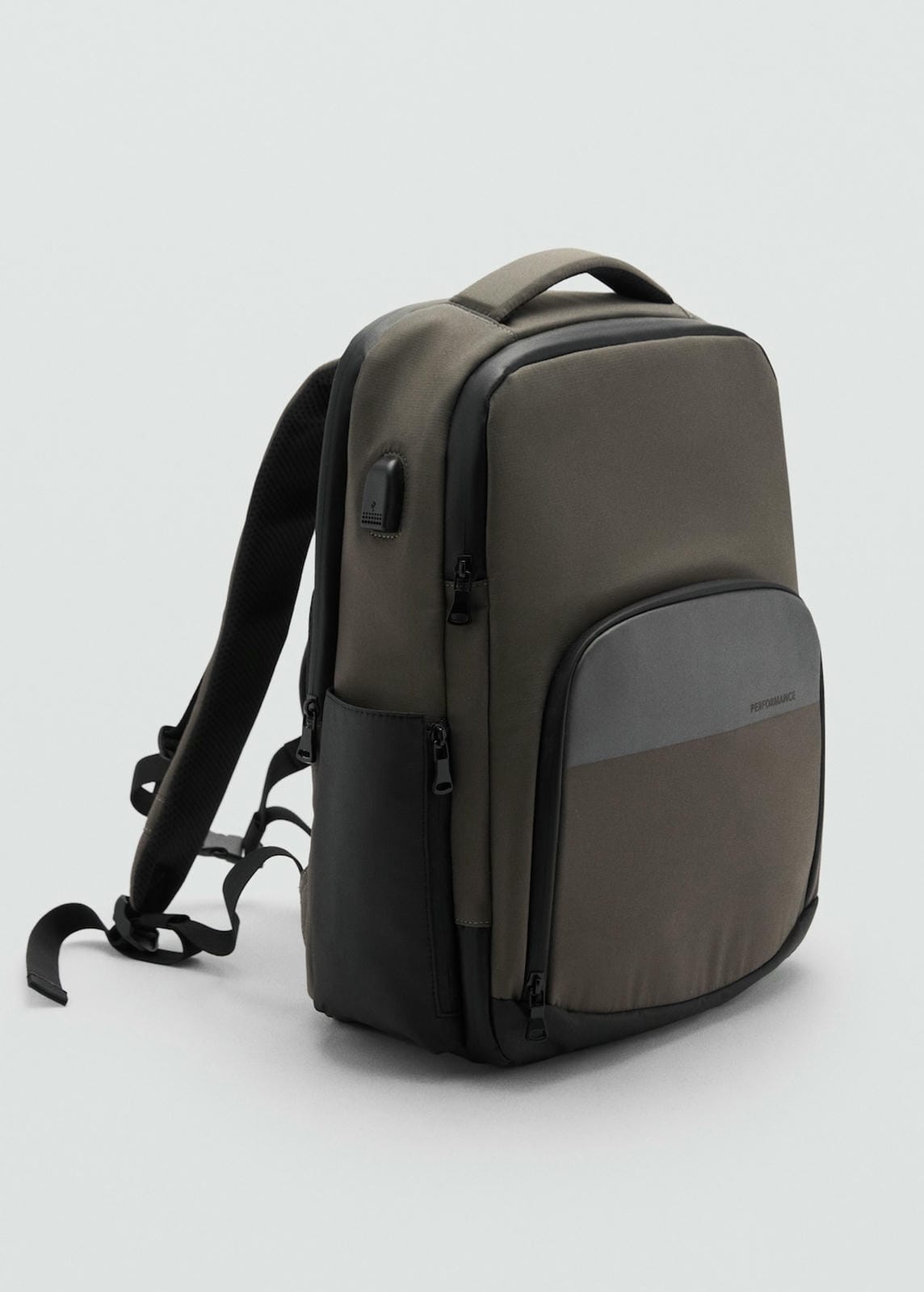 Water-repellent: The durable finish of this garment protects against light rain, repelling contact with water and raindrops. Rip-stop: technical fabric that prevents rips from spreading. For a longer life. USB Connection: A built-in port in the backpack that allows you to charge devices on the go by connecting a power bank inside the backpack. Three compartments. Two side pockets for carrying bottles. Two adjustable shoulder straps and a short top handle. Compartment for electronic devices up to 25 cm wide. Thermosealed zip closures. Band handle for easy transport as a carry-on bag. Performance Collection. 42.0x15.0x32.0 cm (Length x Height x Width). The Performance collection includes garments made with technical fibres that will keep you intact. This high-performance selection includes a wide range of advanced features such as bi-stretch, quick-drying, easy ironing, thermoregulating, breathable or water-repellent fabrics, organised into three general categories: Thermoregulating, Functional and ComfortProduct Code: 77035977-35