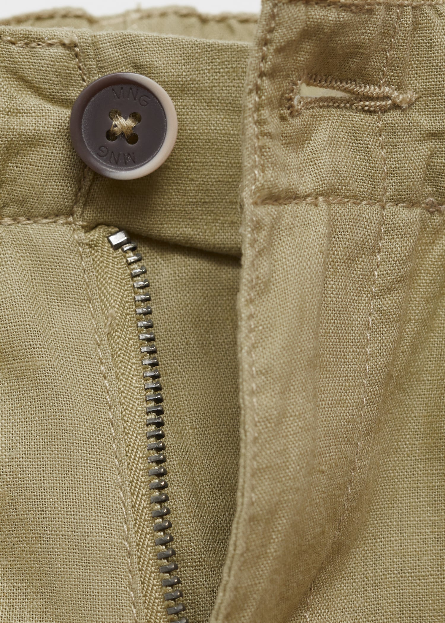 Linen fabric. Cotton fabric. Short design. Straight Design. Elasticated waist. Belt loops. Zip and button fastening. Two side pockets. Back patch pocket.Product Code: 17091167-37