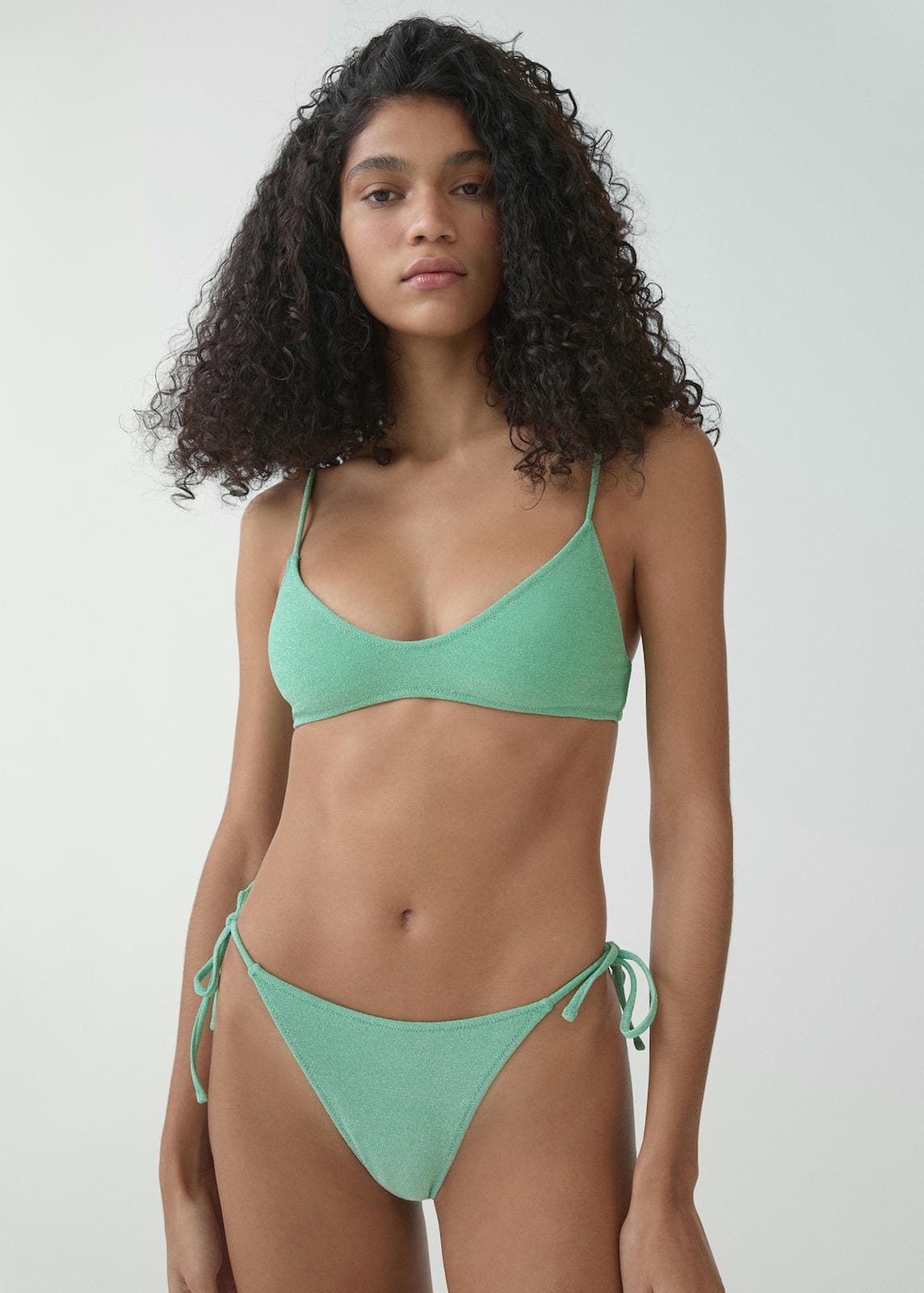Fabric with metallic thread. Classic design. Inner lining. Adjustable bows fastening. Swimwear collectionProduct Code: 67056734-46