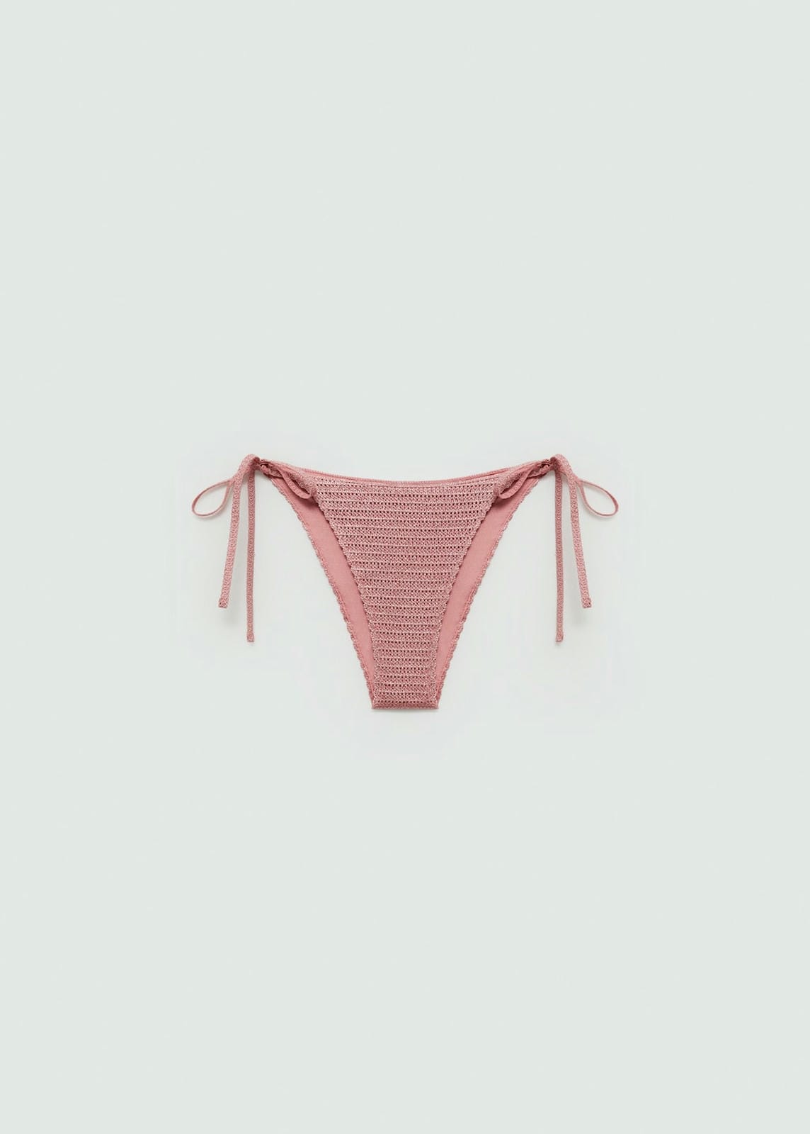 Fabric with metallic thread. Crochet fabric. Classic design. Adjustable bows fastening. Inner lining. Total look available. Swimwear collectionProduct Code: 67039229-85