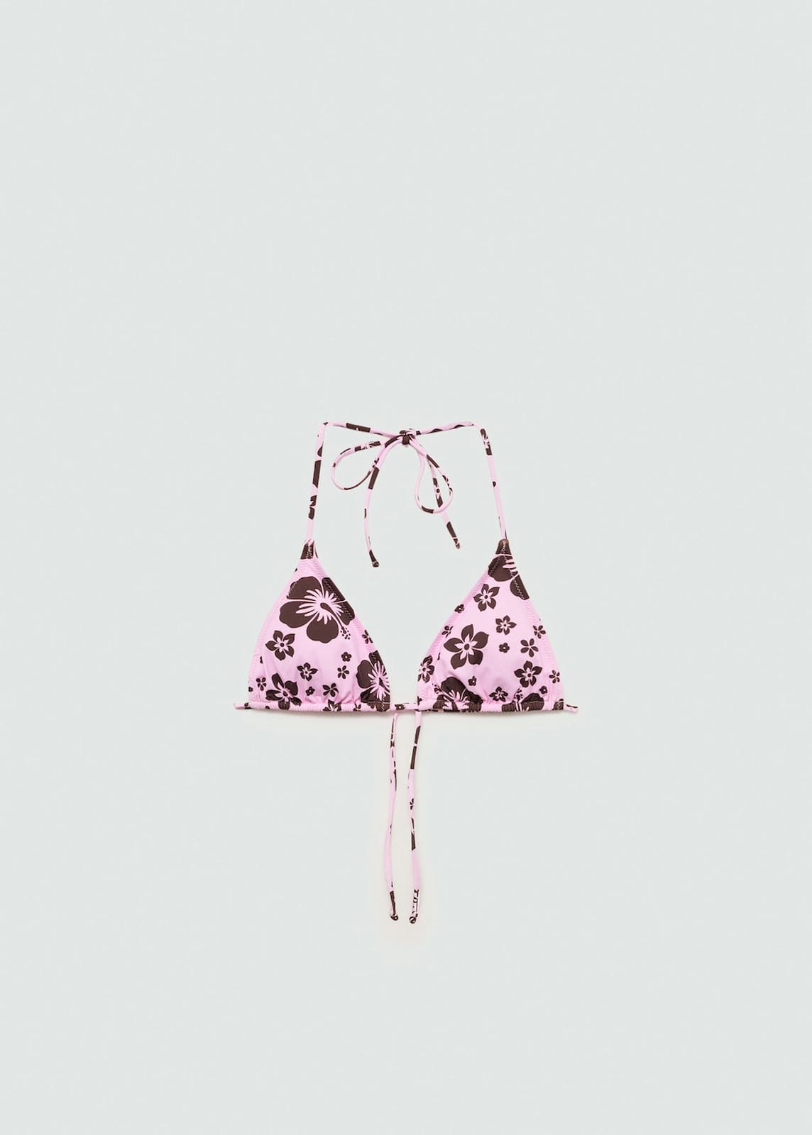Triangular design. Printed design. Flowers print. Bow fastening on the neck and back. Removable foam. Inner lining. Total look available. Swimwear collectionProduct Code: 67019235-85