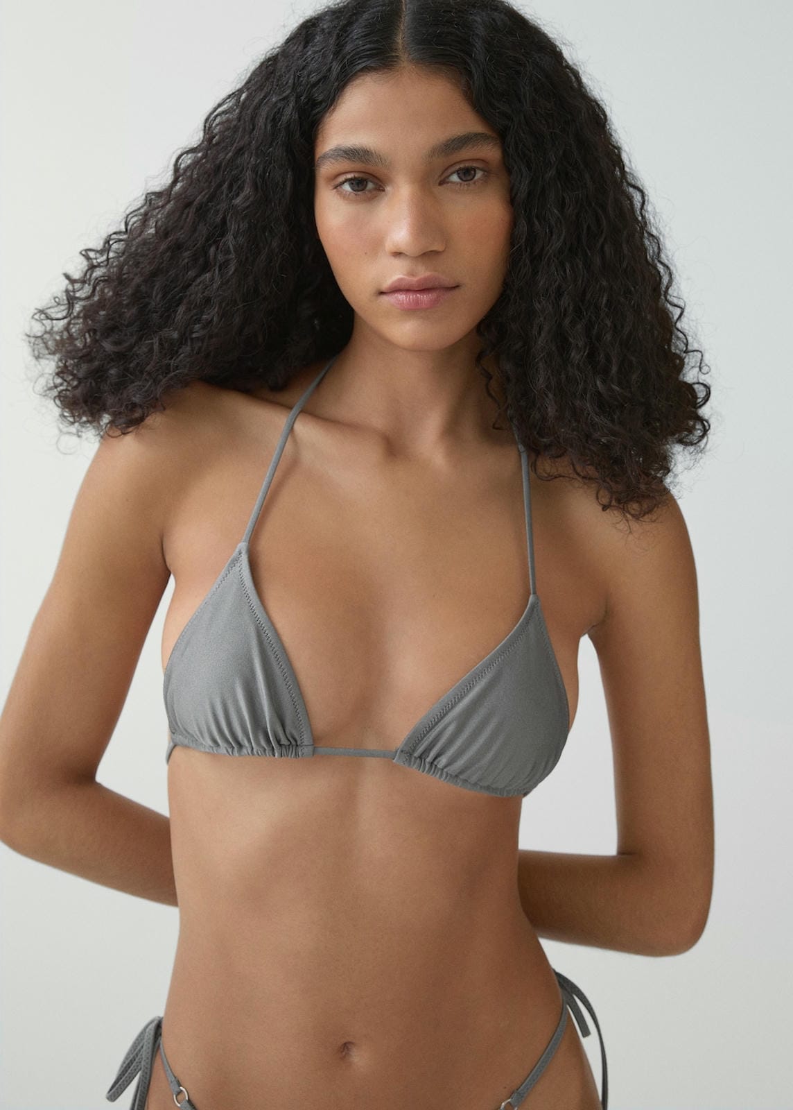 Metallic fabric. Triangular design. Adjustable tie closures. No foam. Inner lining. Set Available. Swimwear collectionProduct Code: 67006746-92