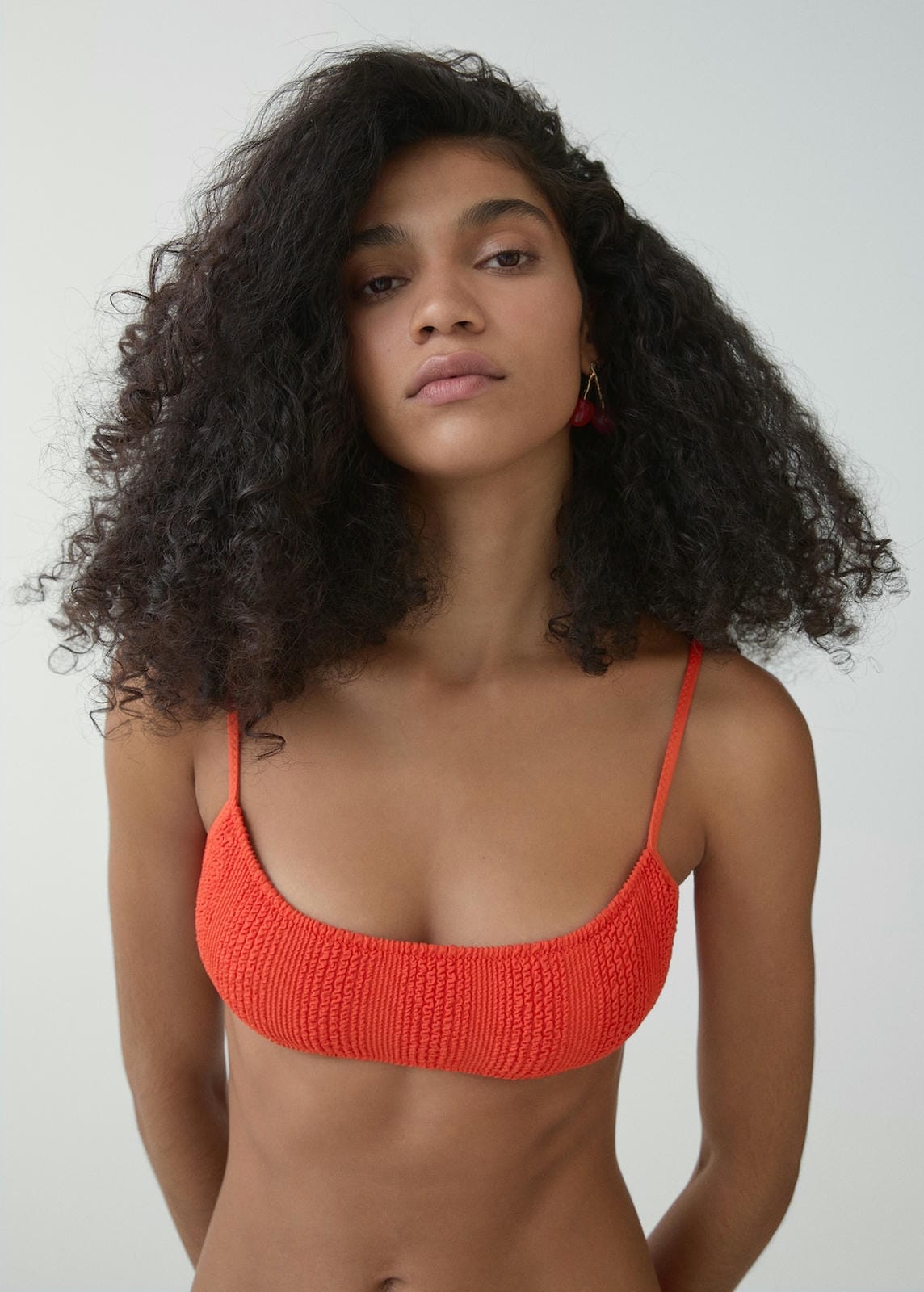Textured fabric. Double strap. No fastening. Inner lining. Set Available. Swimwear collection. Side length 8.5 cm. Back length 1.0 cmProduct Code: 67024019-87