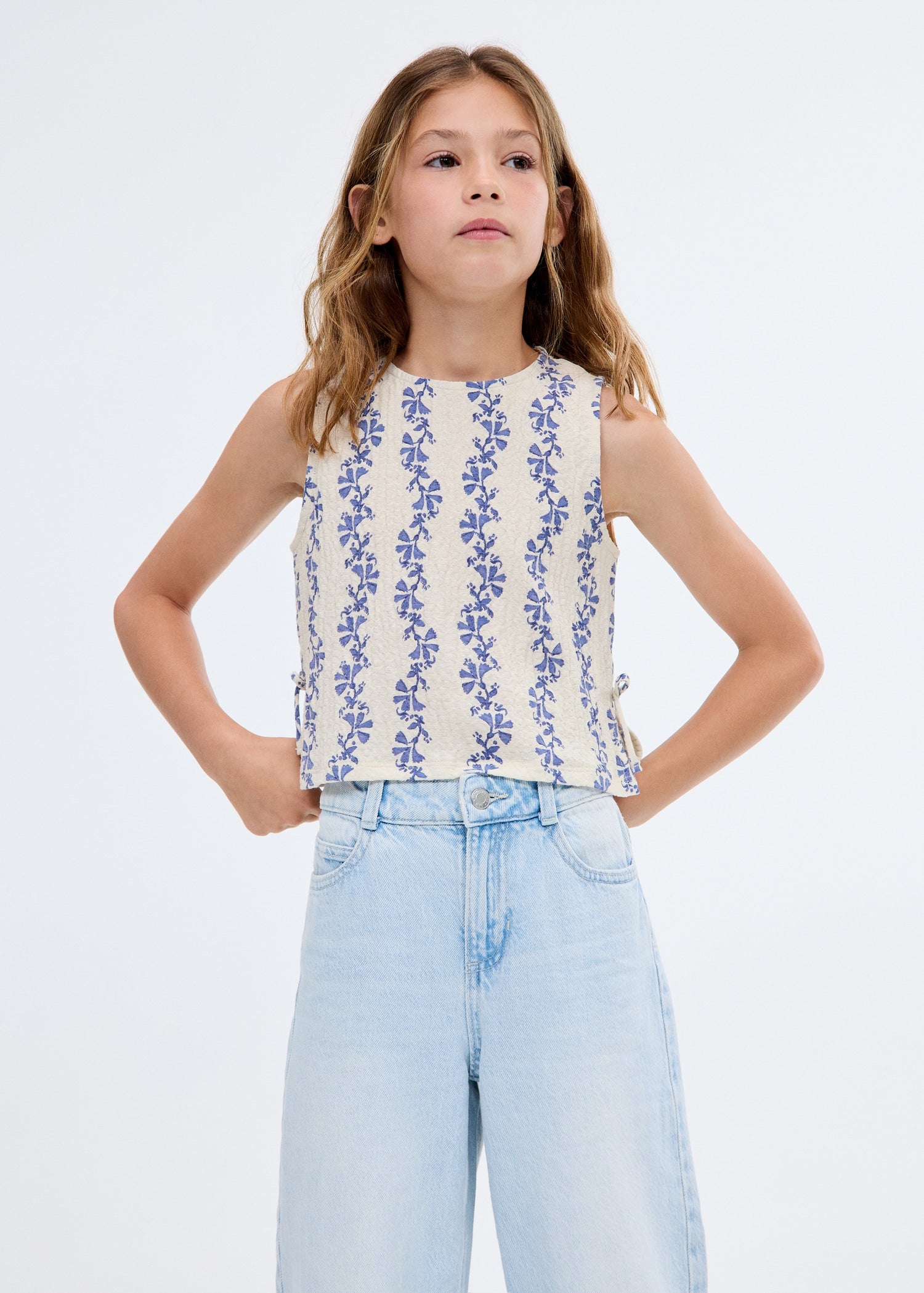 Bambula fabric. Printed design. Floral print. Round neck. Sleeveless. Side slits. Bow details on the sides. Button closure at the back.Product Code: 17033291-05