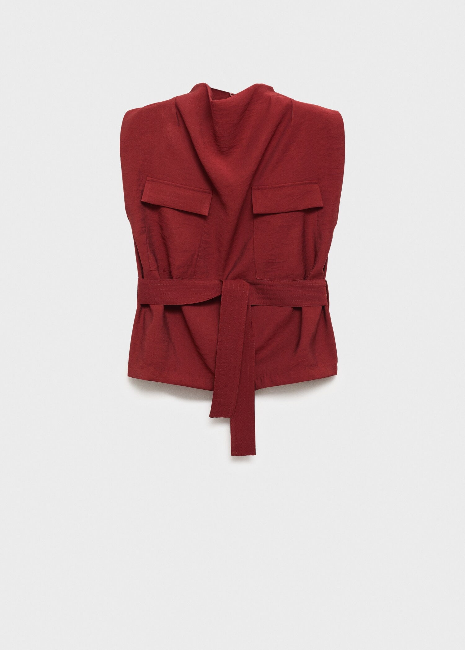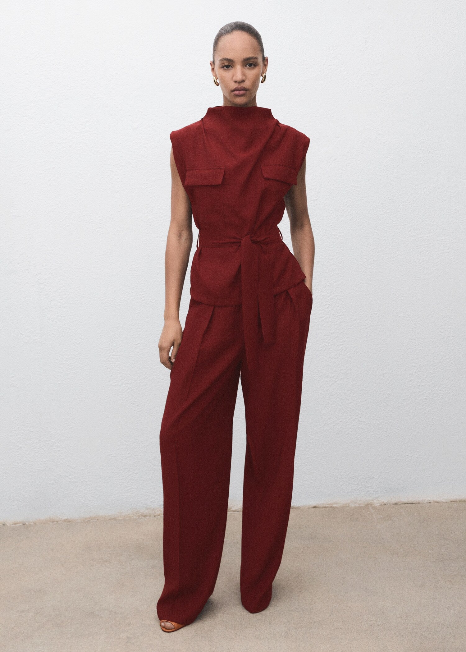 Crafted from fluid fabric, this garment features a straight design with a draped neckline and a sleeveless cut. It includes two flap pockets on the chest and an adjustable belt. It comes with matching trousers for an ideal total lookProduct Code: 17064137-73