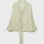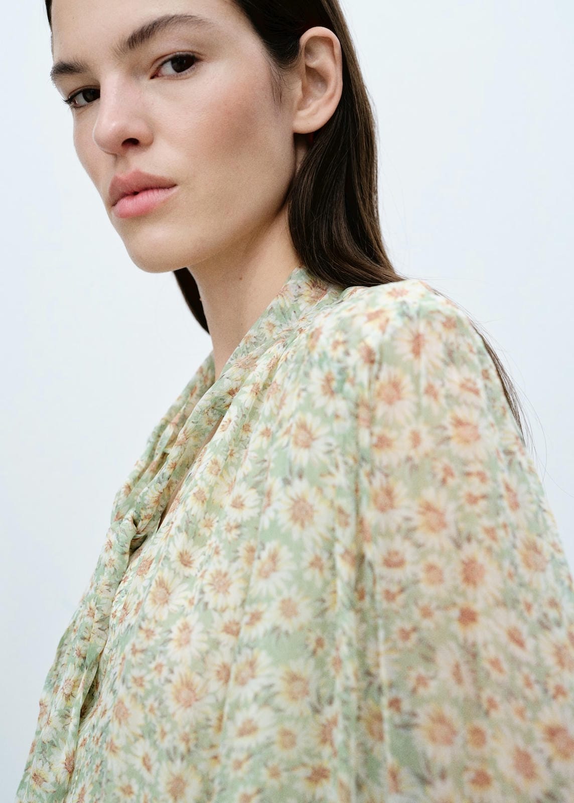 Gauze fabric. Straight Design. Semi-transparent design. Flowers print. V-neck. Bow detail at the neck. Long sleeve. Button Fastening at the Front. Inner lining. Available Plus. Total look. Side length 40.7 cm. Back length 69.7 cmProduct Code: 87065745-43