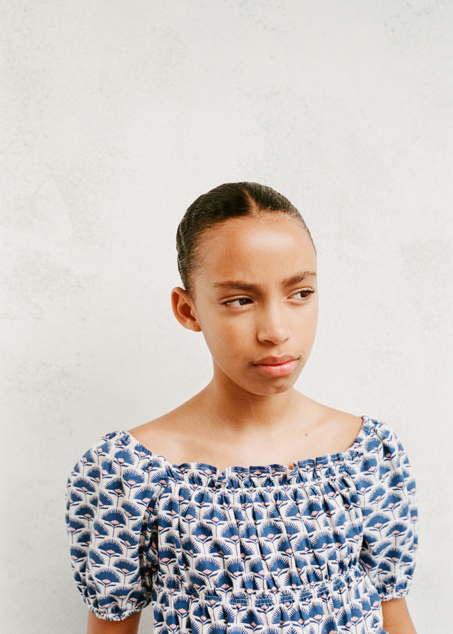 Linen fabric. Organic cotton fabric. Floral-print design. Open round neck. Elastic detail on the neck. Puffed short sleeve. Elastic hem.Product Code: 17091202-52