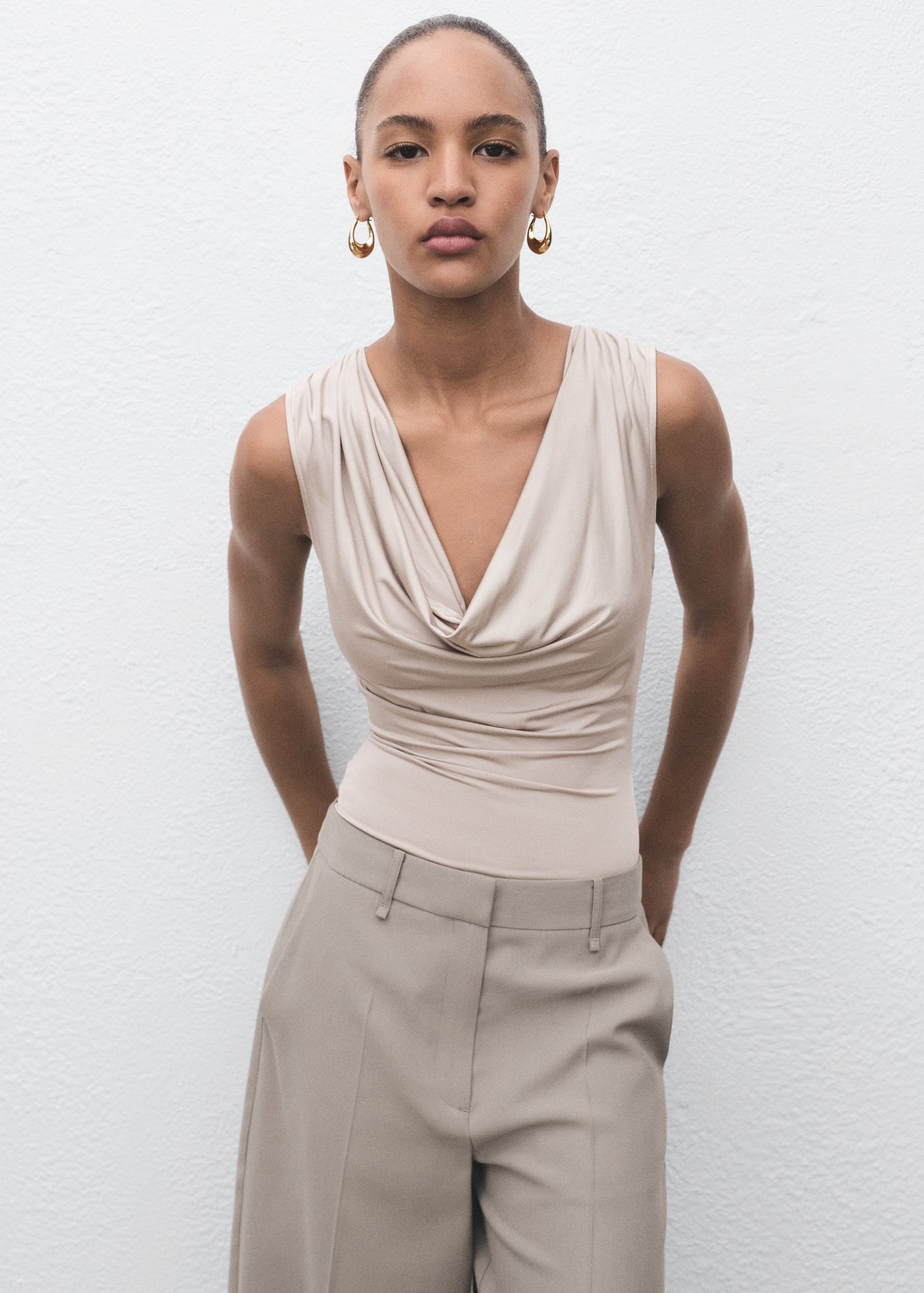 Crafted from stretch fabric, this tailored design features a draped neckline with straps that accentuate the silhouette.Product Code: 17074091-06