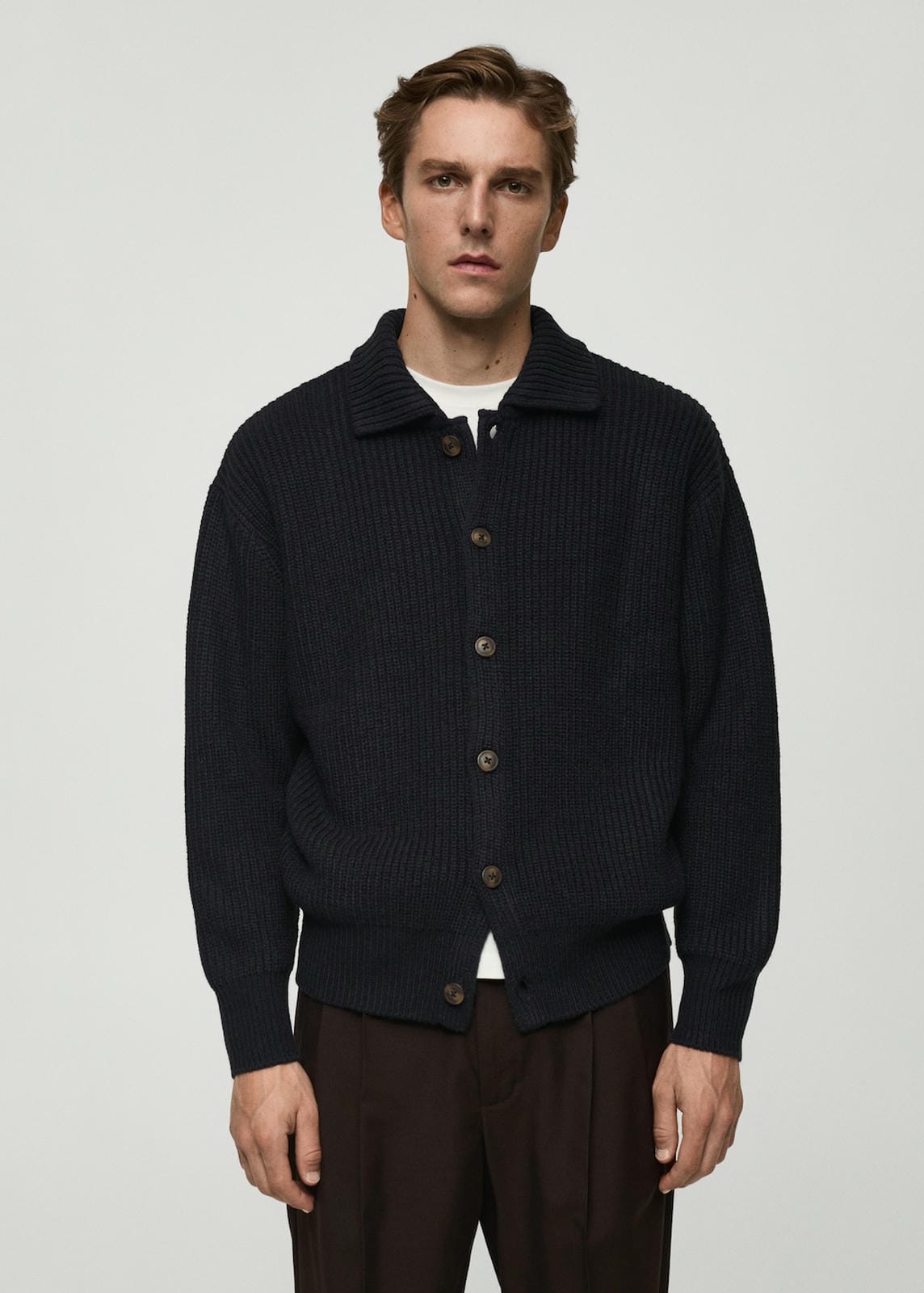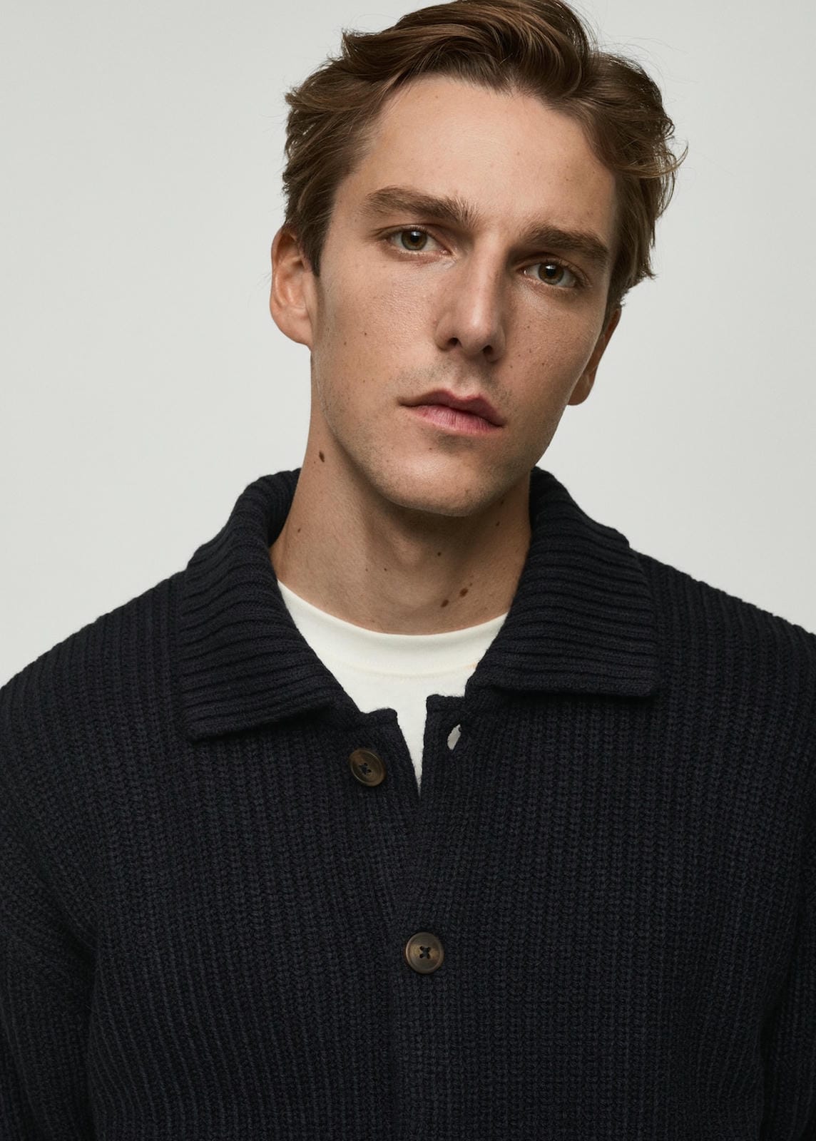 Relaxed fit. Wool mix fabric. Cable knit fabric. Shirt-style collar. Button up. Untrimmed sleeves. The model is 185 cm tall and is wearing a size M. Back length 69.0 cmProduct Code: 77079228-56