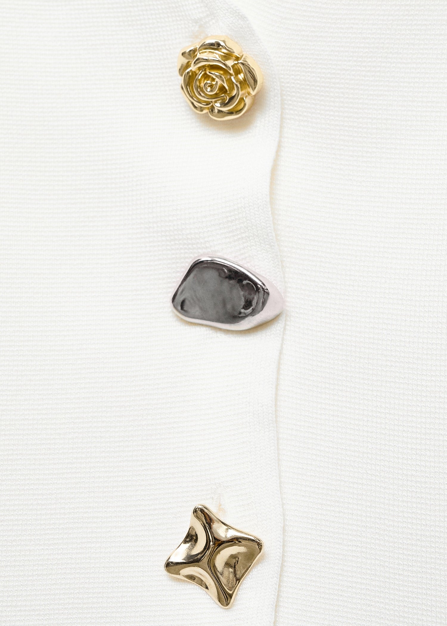 Crafted from a fine-knit fabric, this fitted design features an elegant V-neck and short sleeves. Jewel-effect buttons adorn the front fastening, giving it a distinctive airProduct Code: 17074139-01