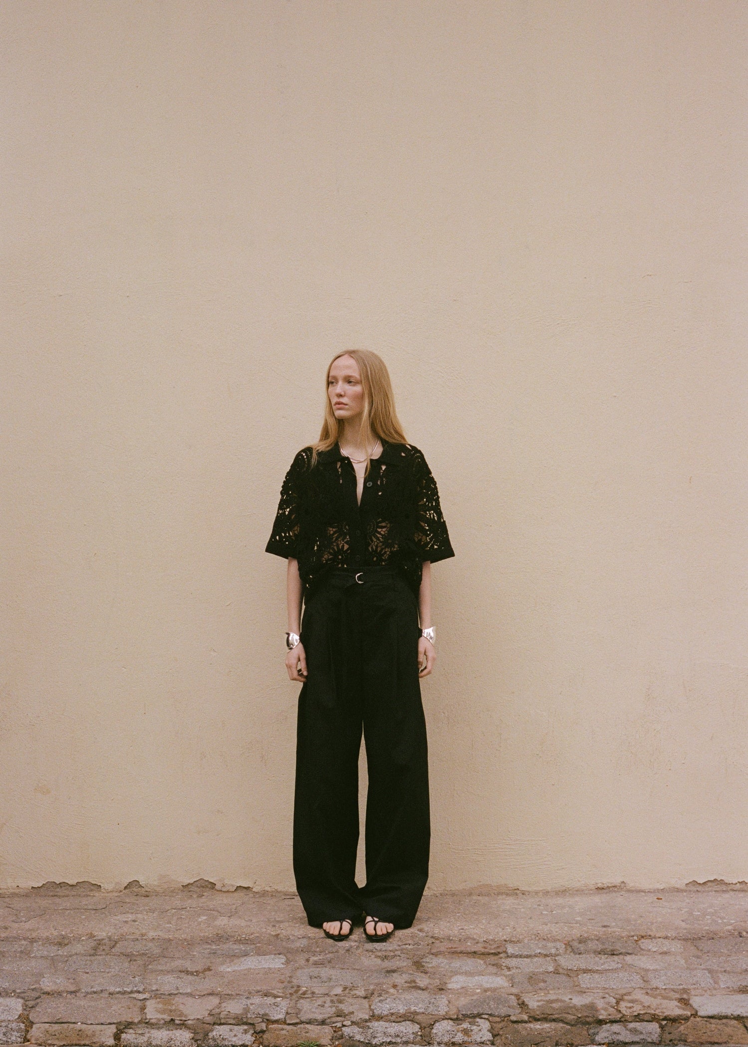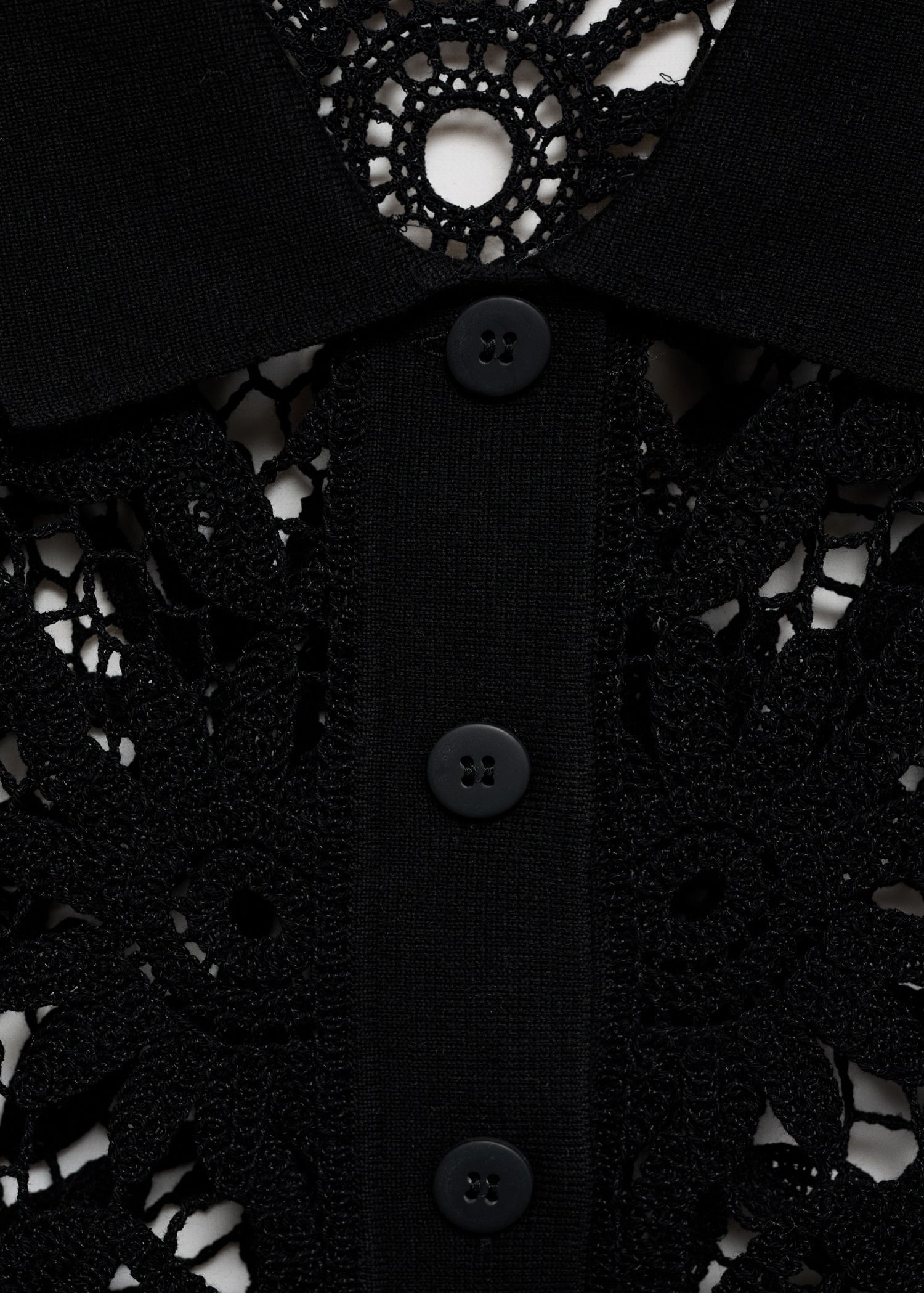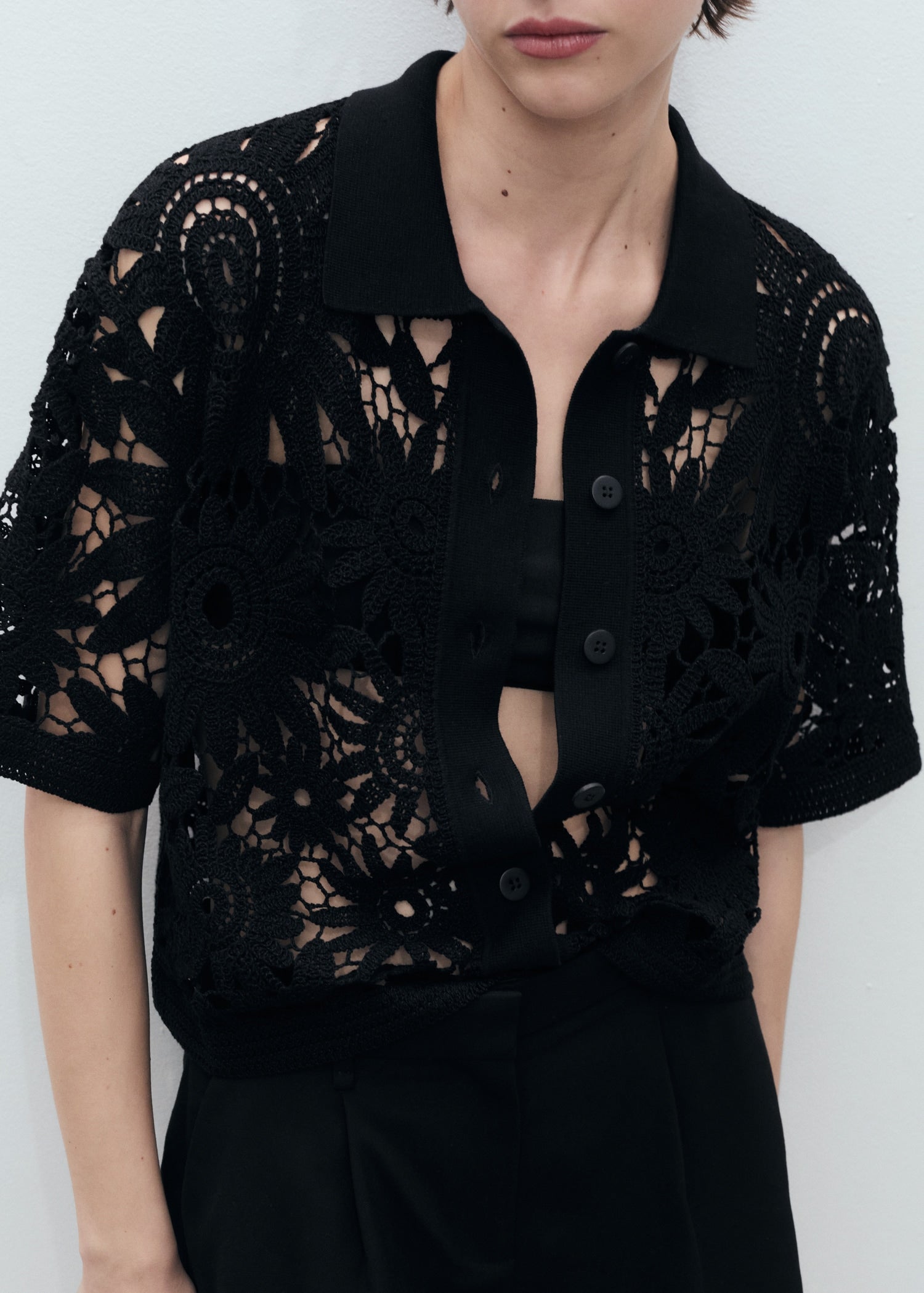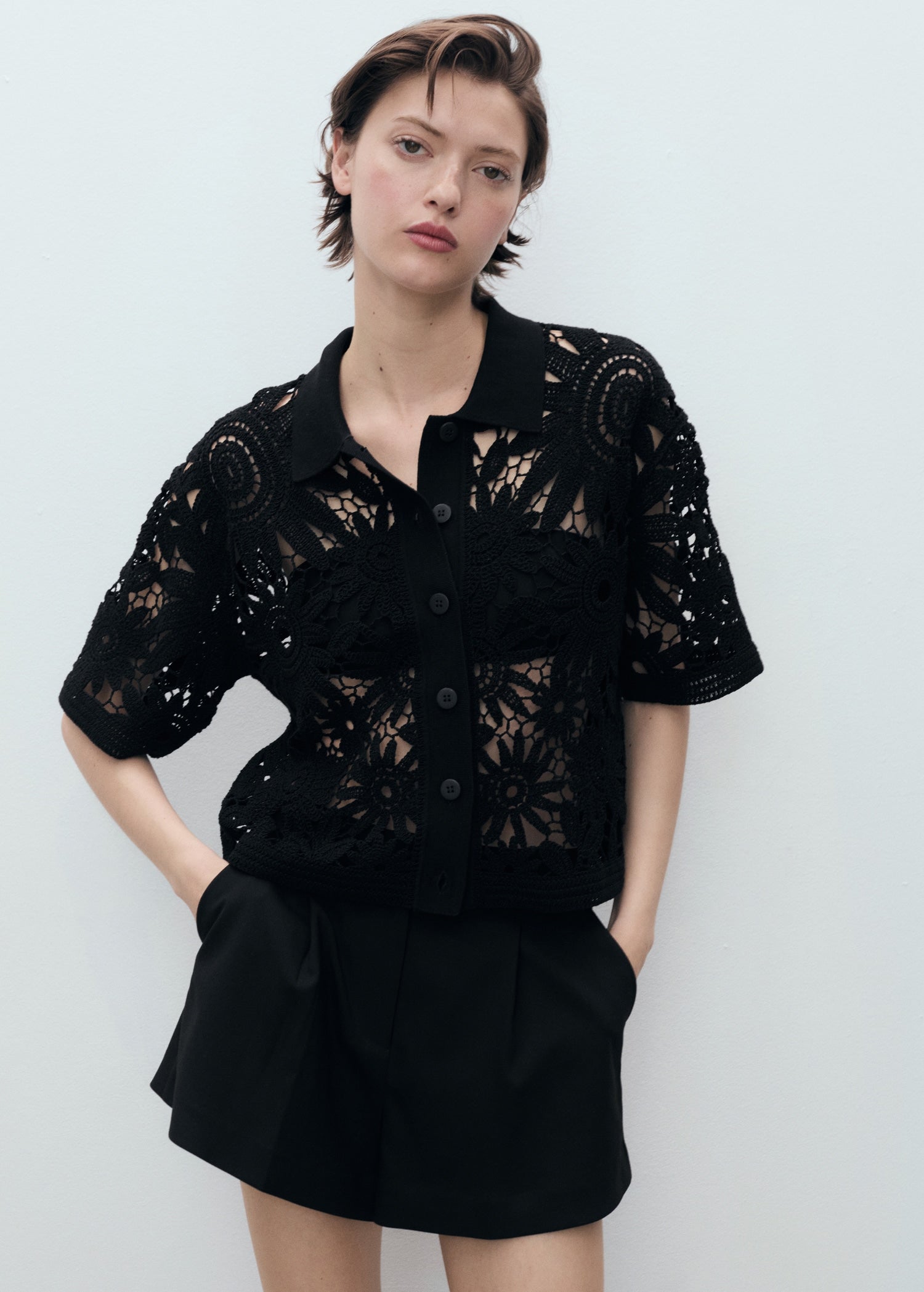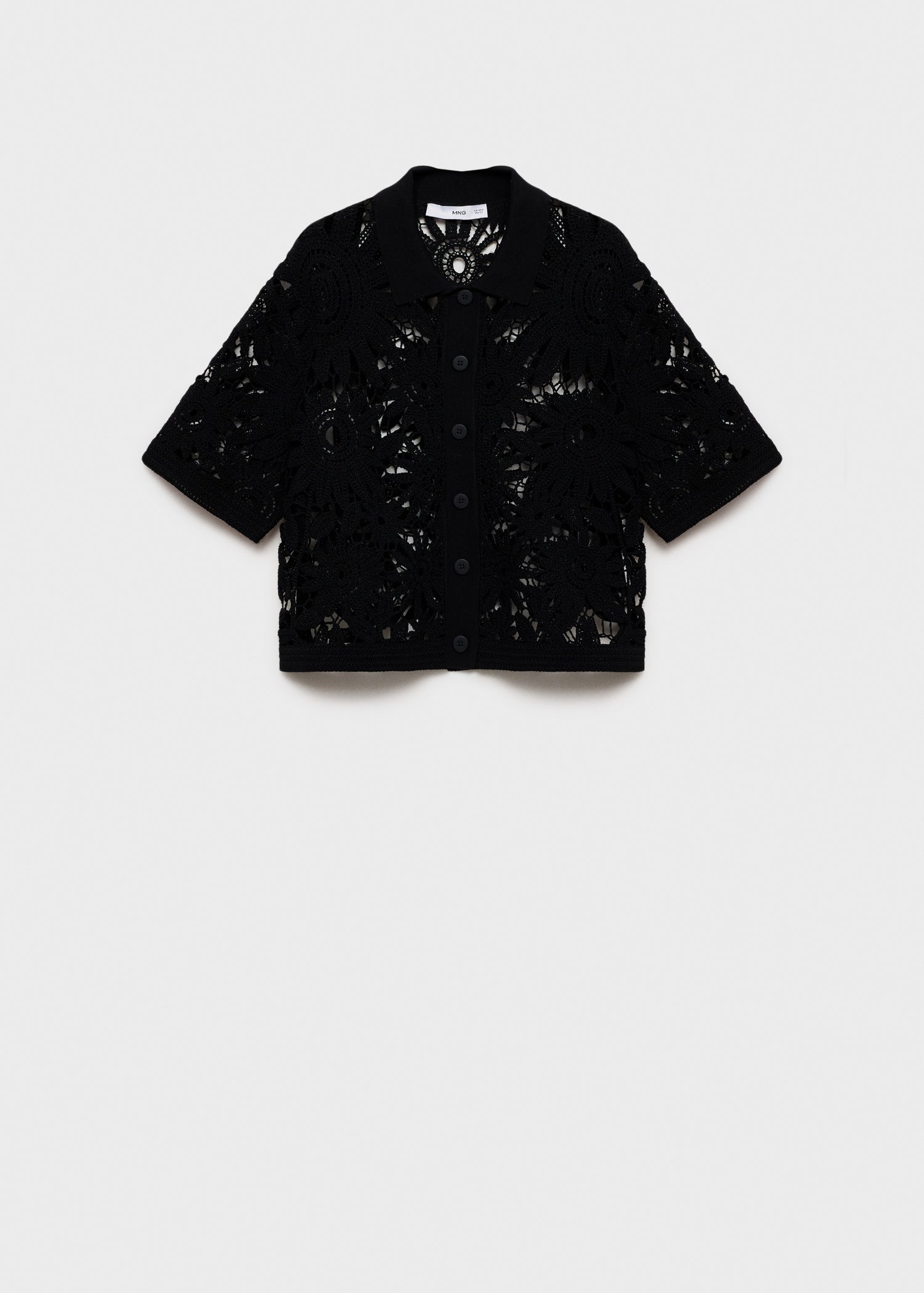 Cotton blend fabric. Knitted fabric. Crochet design. Straight Design. Shirt Collar. Short sleeves. Front closure with buttons.Product Code: 87078642-99