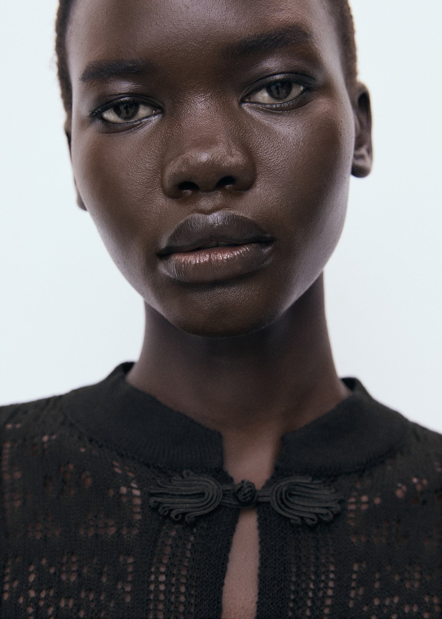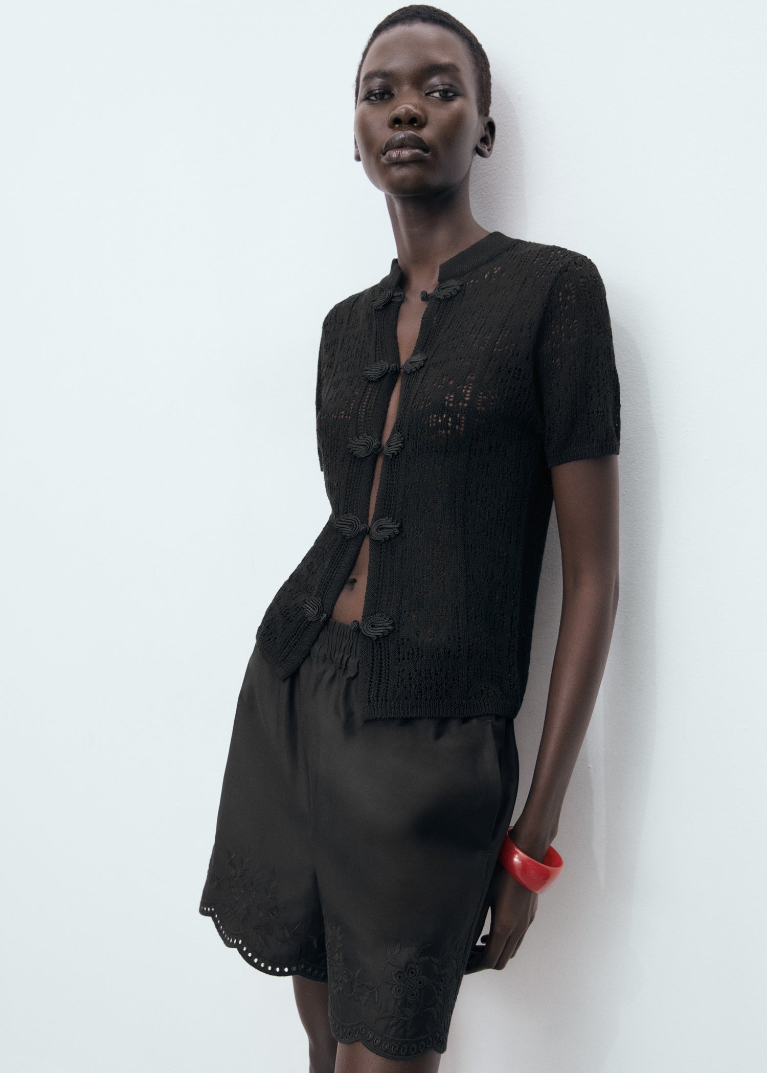This crochet cardigan combines sophistication with classic style. With its fitted design and short sleeves, it offers an elegant fit. The band collar and toggle fastenings add a distinctive air. It can be complemented with skirts or flowing trousers for a casual lookProduct Code: 17062898-99