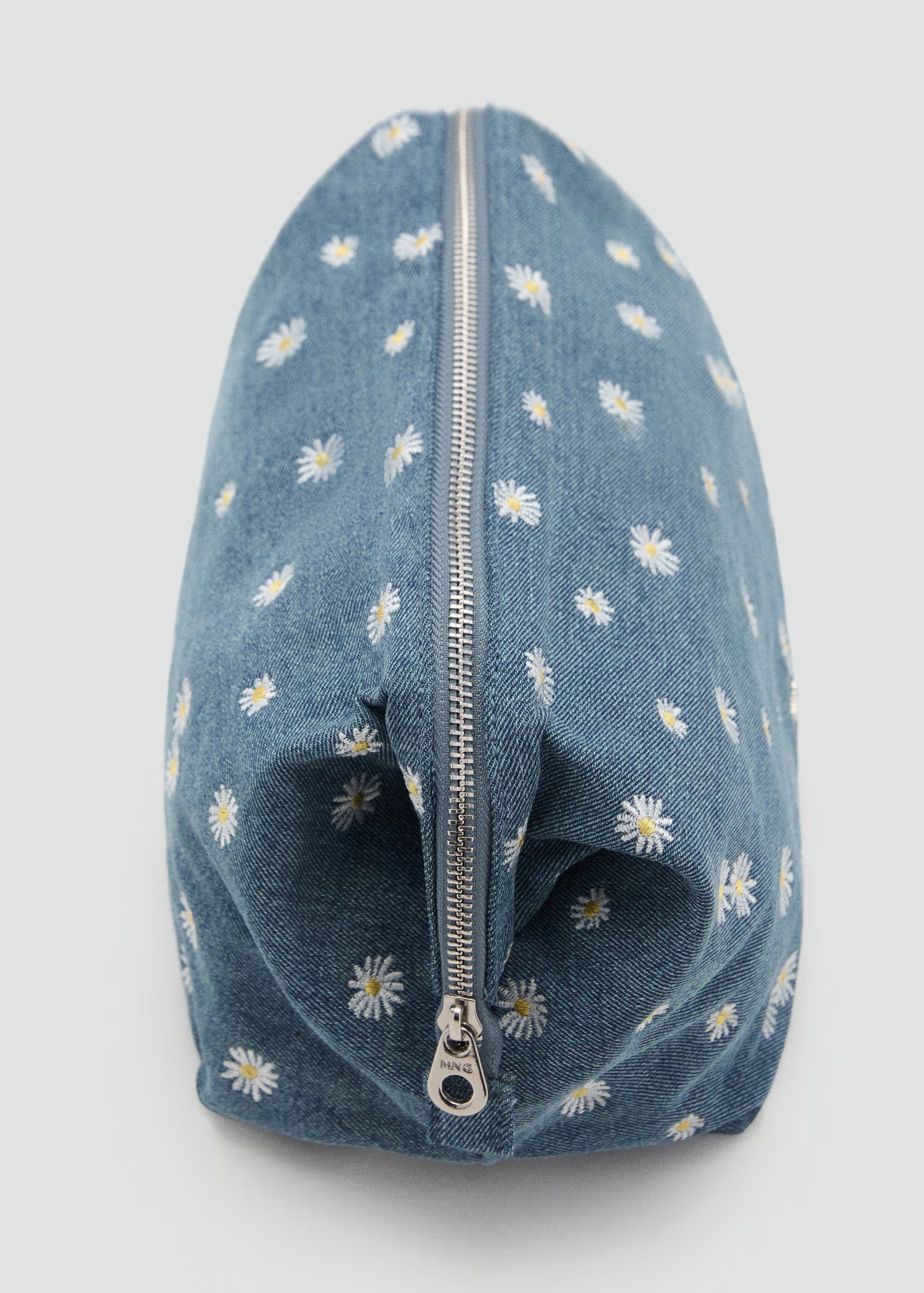 Large. Denim-effect. Flowered embroidery. Zip closure.Product Code: 17021125-TO
