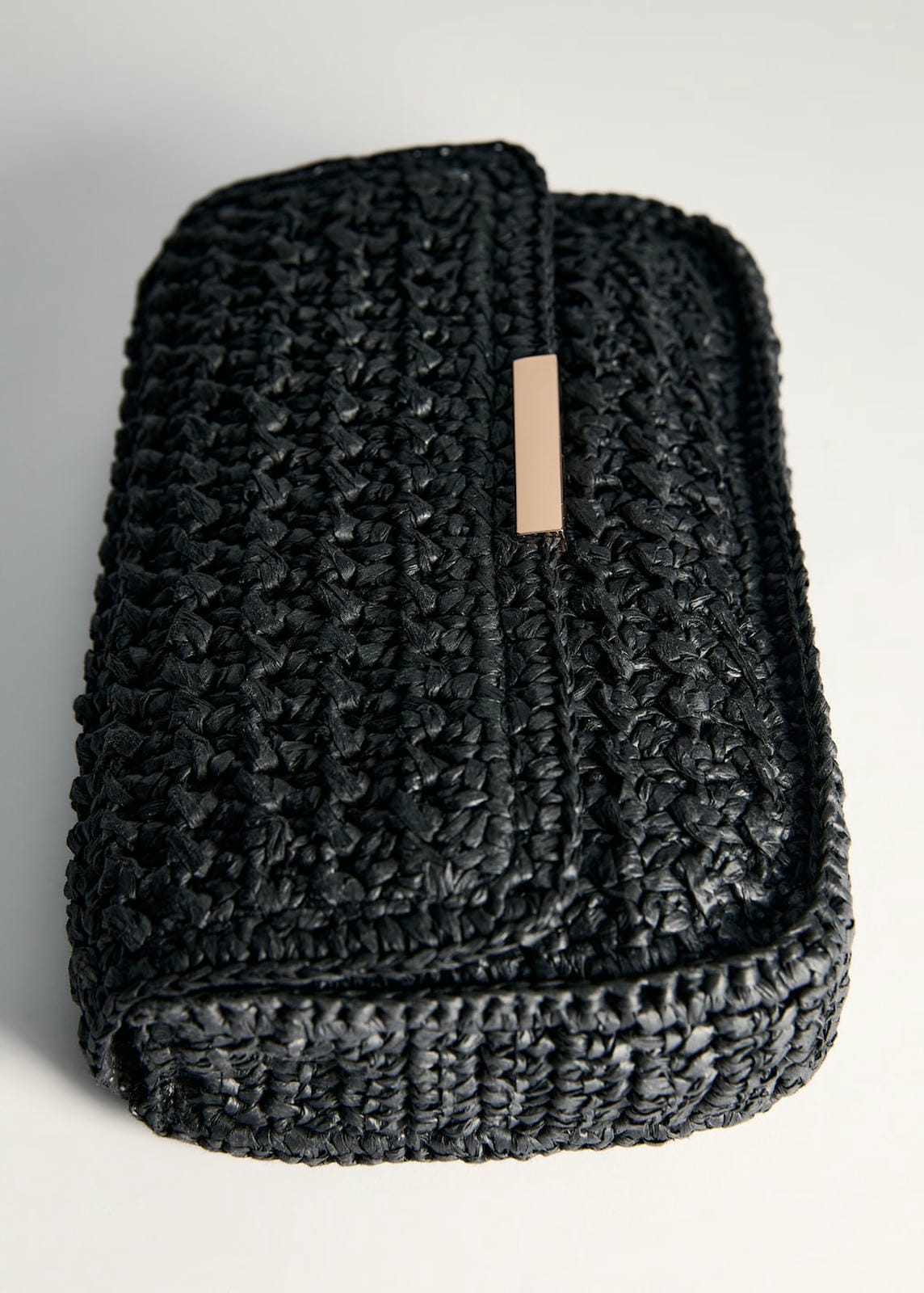 Medium. Natural fibre fabric. Shoulder strap. Long detachable chain strap. Flap closure. Magnetic metallic fastening. 23.0x14.0x5.0 cm (Length x Height x Width)Product Code: 77020339-99