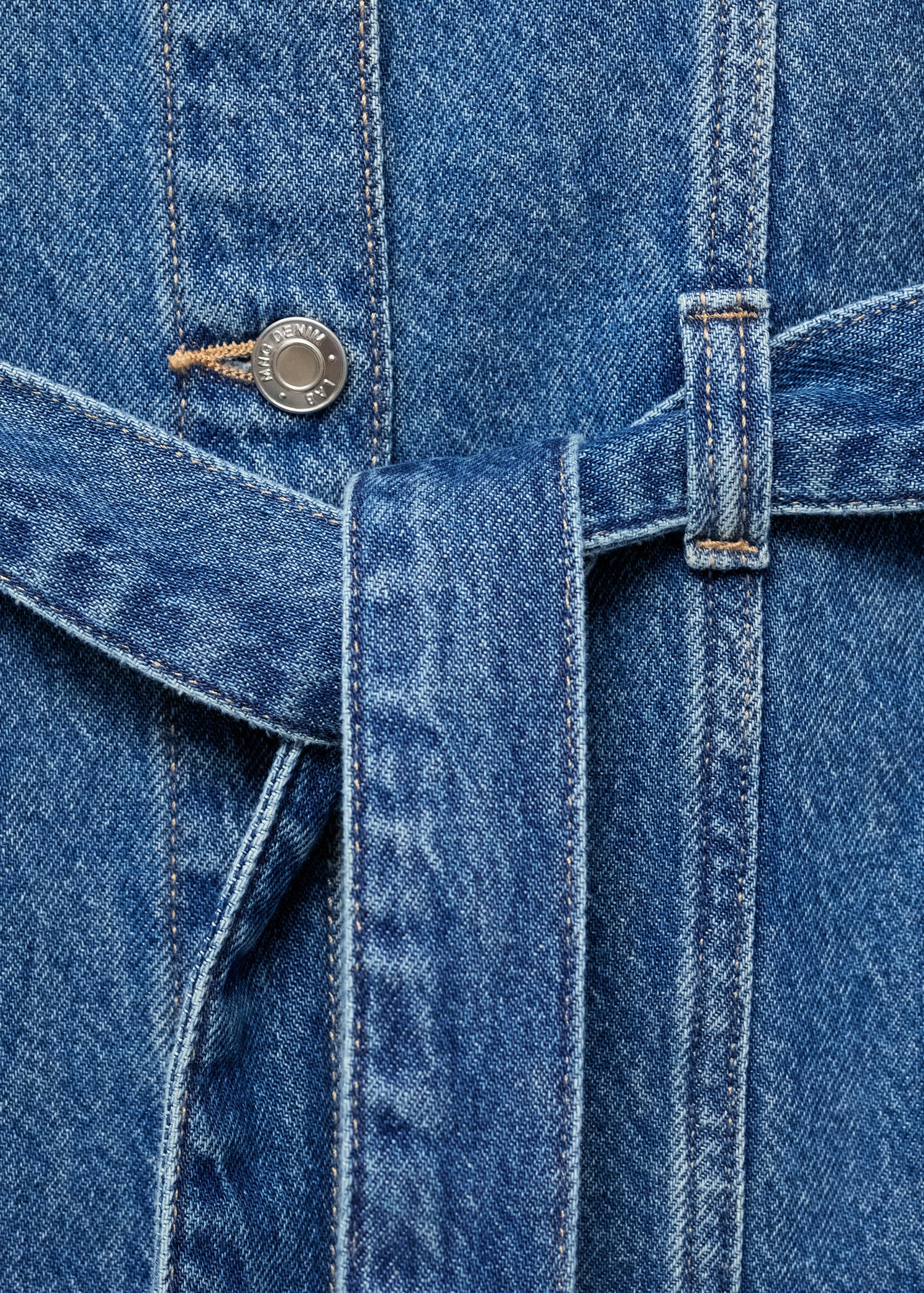 100% cotton fabric. Denim fabric. Straight Design. Shirt Collar. Long sleeves with buttoned cuffs. Front closure with buttons. Adjustable waist tie. Two front patch pockets. Back to school.Product Code: 17085151-TO