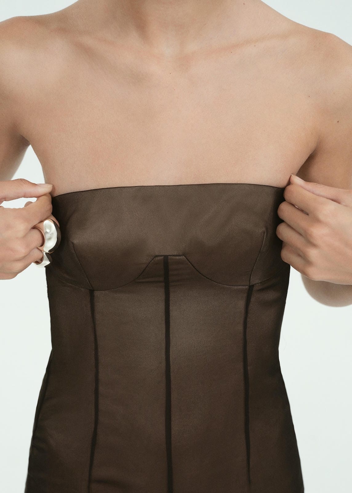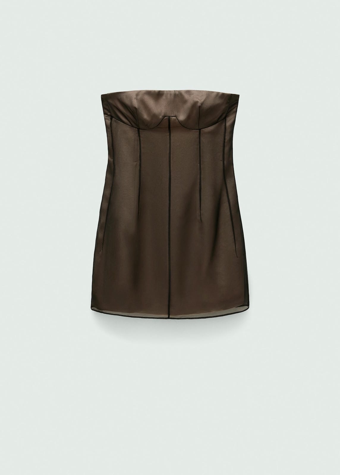 Short design. Sleeveless. Strapless. Inner lining. Party and events collection. The model is 1.77 tall and is wearing a size 36. Selection Collection. Corset style. Fitted design. Zip fastening on the back section. Side length 63.8 cm. Back length 60.8 cm. Selection, our most premium collection, ushers in the festive season with its new evening edition which, with its bold designs and high-quality materials, embodies the most contemporary sophisticationProduct Code: 77029062-99