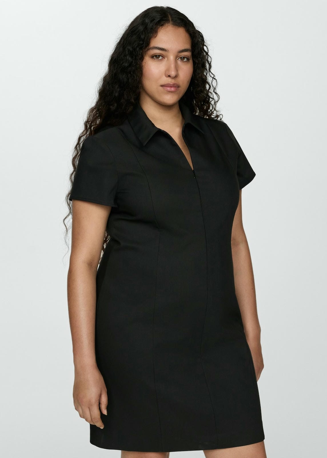 Flowy fabric. Straight design. Shirt-style collar. Short sleeve. Invisible front zip fastening. Decorative seams. Inner lining. Plus Size Available. Fitted design. Side length 78.5 cm. Back length 104.0 cmProduct Code: 77034033-99