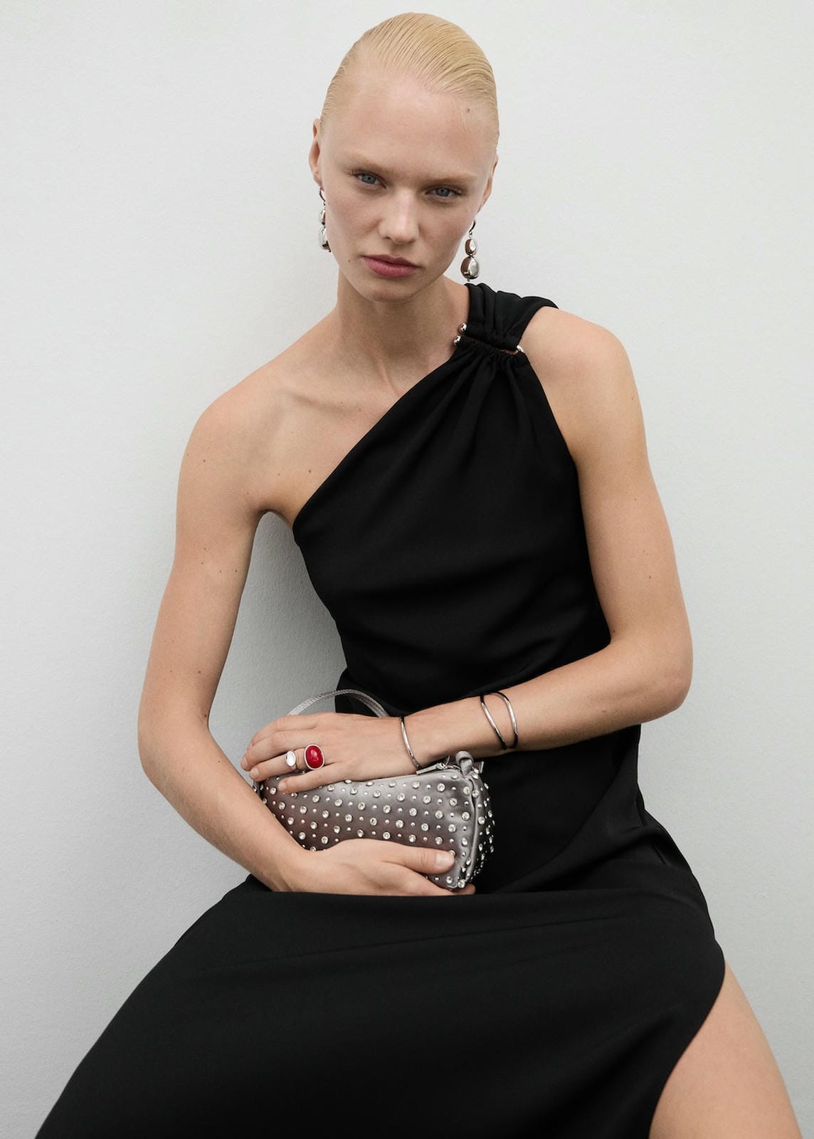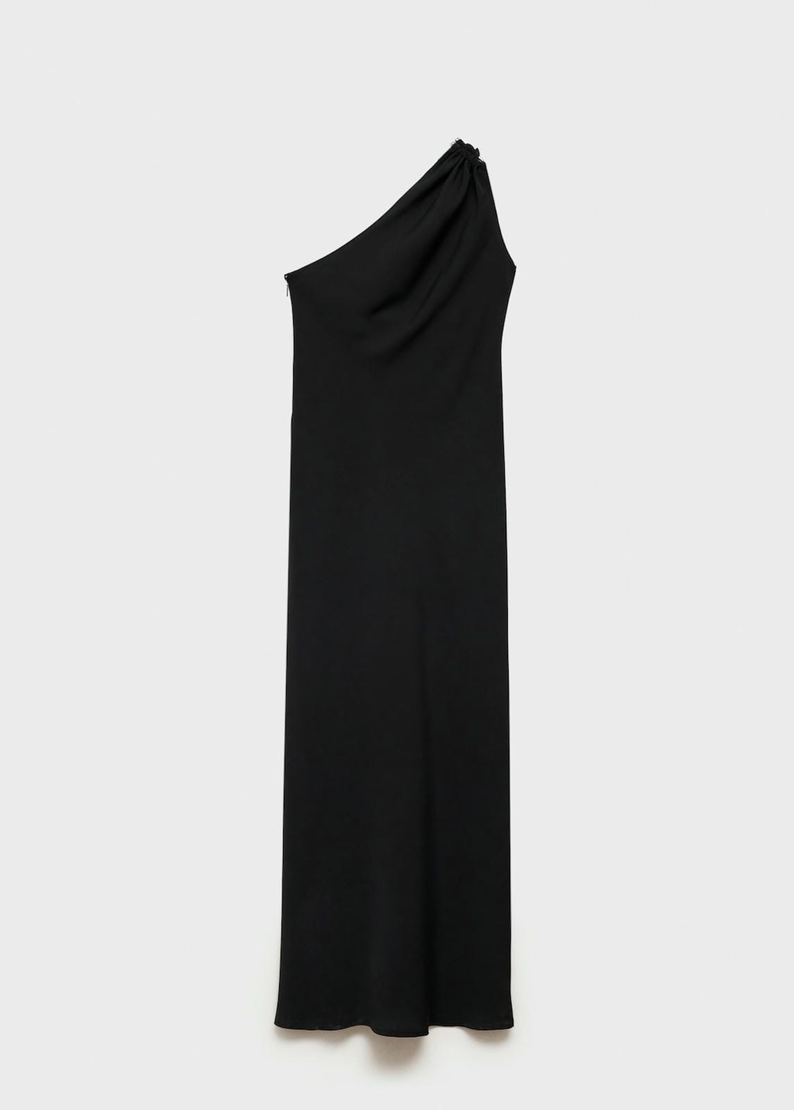 Flowy fabric. Long design. Asymmetric neckline. Wide strap. Metallic detail. Draped detail. Invisible lateral zip fastening. Party and events collection. Fitted design. Back length 156.8 cmProduct Code: 77014039-99