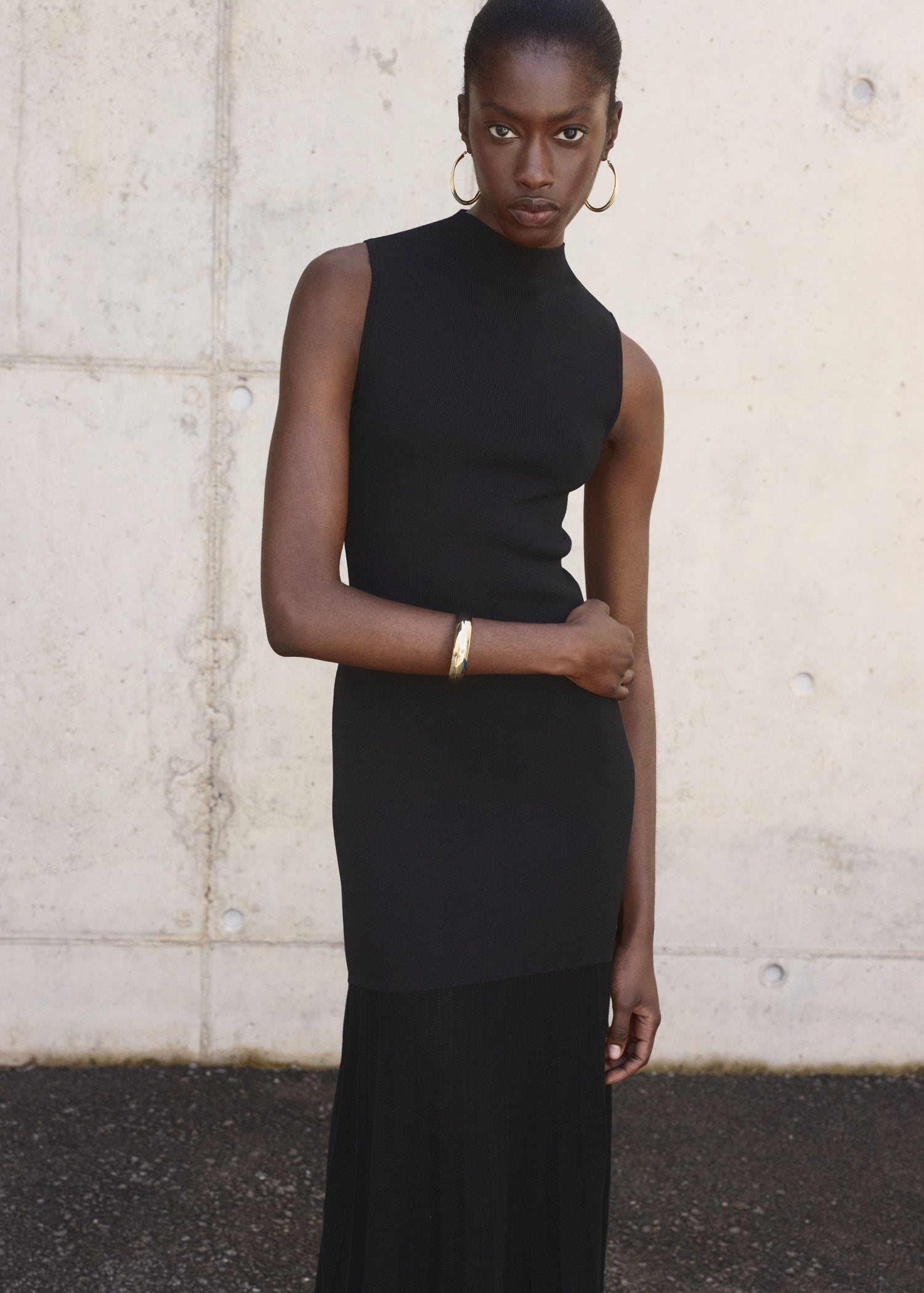 Fine-knit fabric. Combined design. Long design. Fitted design. High collar. Sleeveless. Zip fastening on the back section. Lyocell fabric. A-line design. This garment is part of our casual collection, designed to stylishly accompany you in your day-to-day life.Product Code: 17071281-99