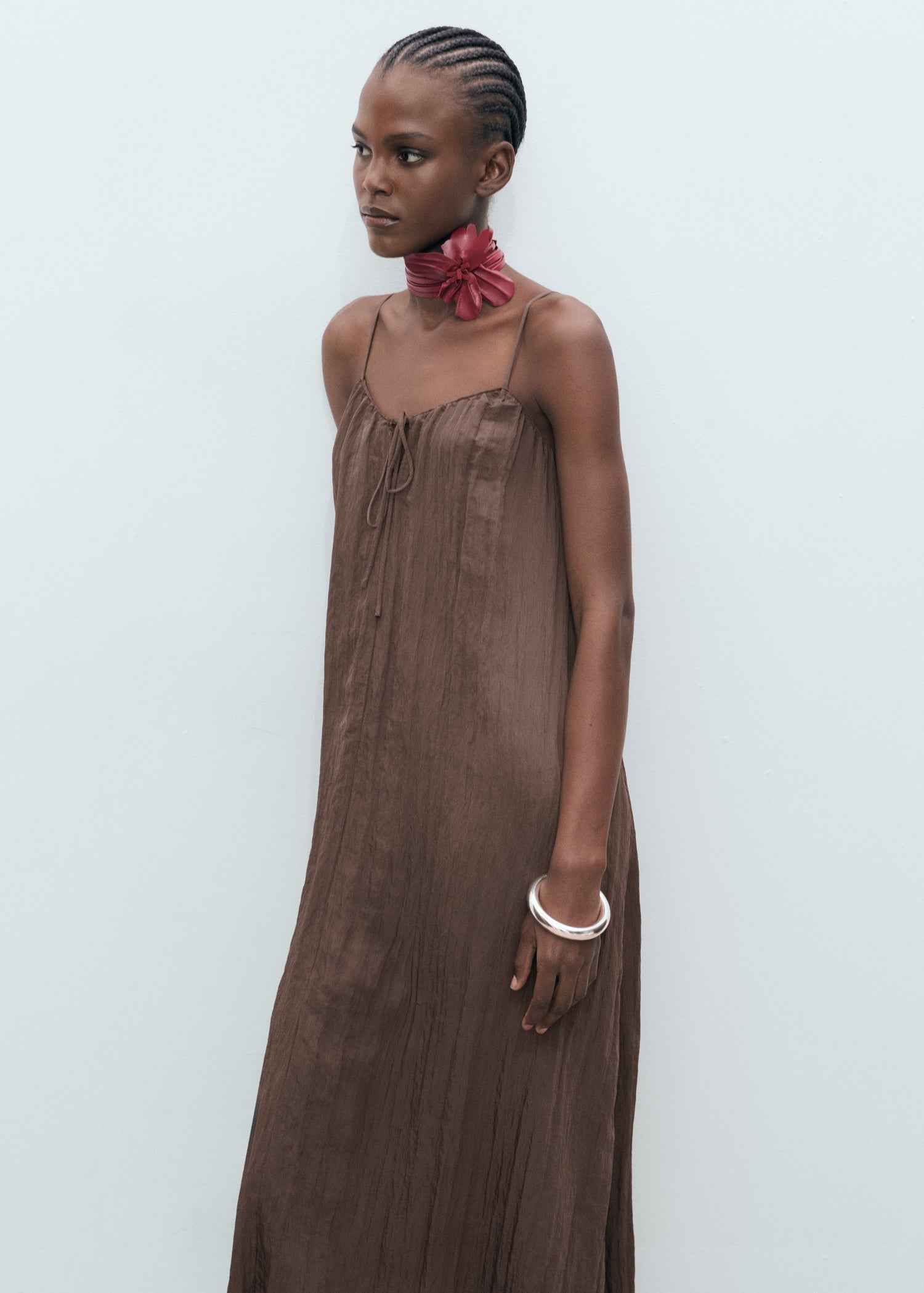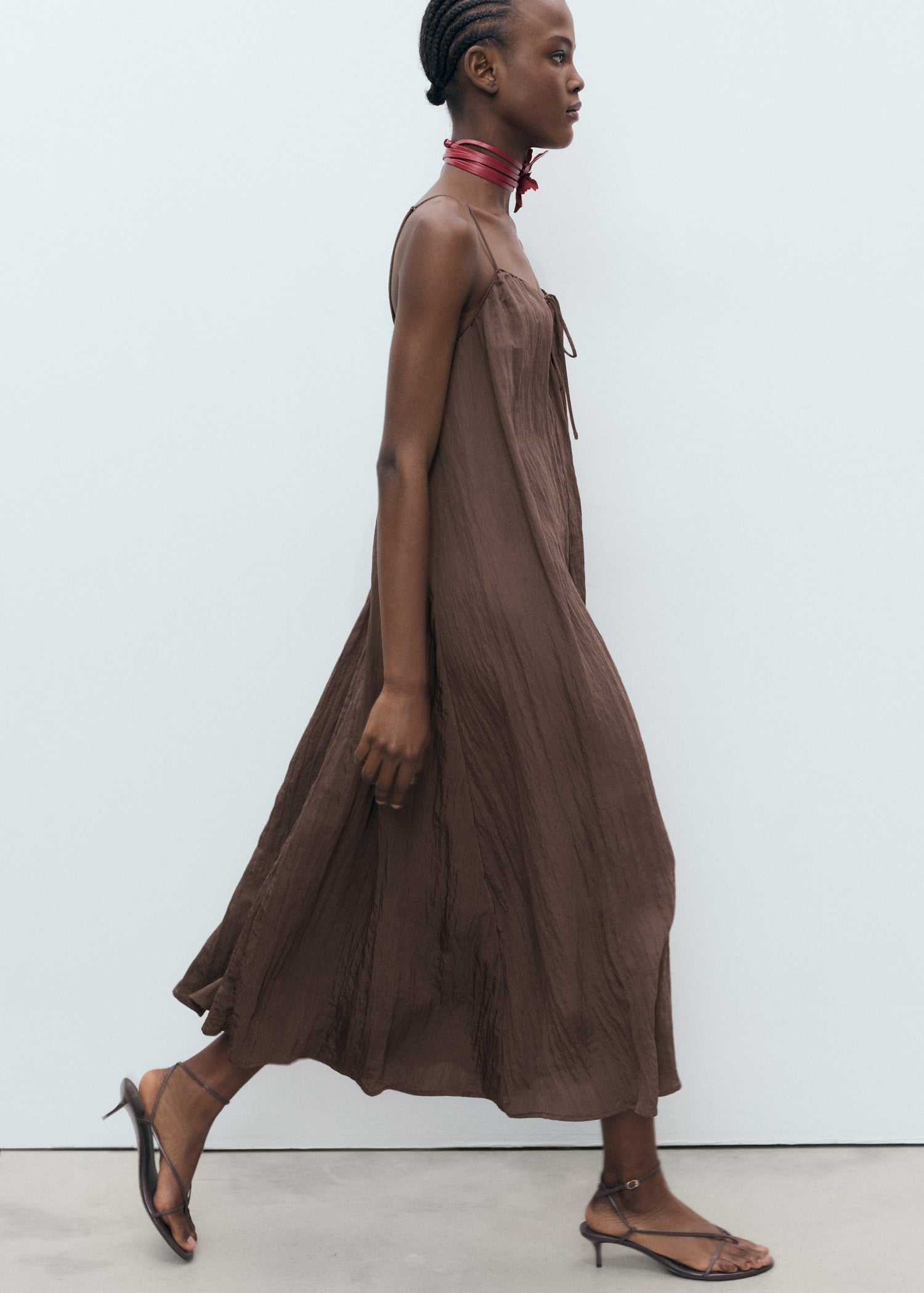 Long design. Straight Design. Wrinkled effect. Low neckline. Bow detail on the neckline. Sleeveless. Thin straps. No Fastening. This garment is part of our casual collection, designed to stylishly accompany you in your day-to-day life.Product Code: 17021164-30