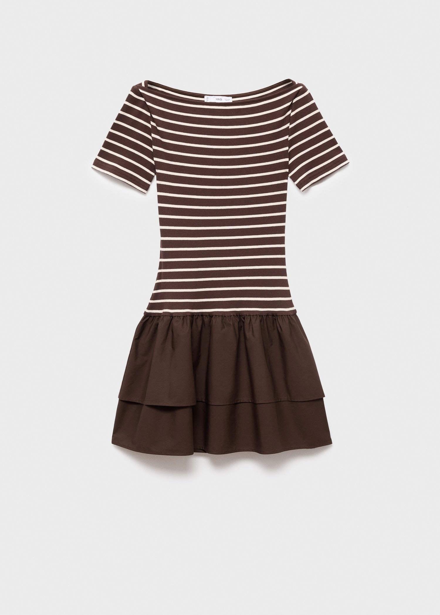 Cotton fabric. Short design. Fitted design. Combined design. Boat neck. Short sleeves. Stripe design. Ruffles in the skirt. No Fastening. This garment is part of our casual collection, designed to stylishly accompany you in your day-to-day life.Product Code: 17064115-30